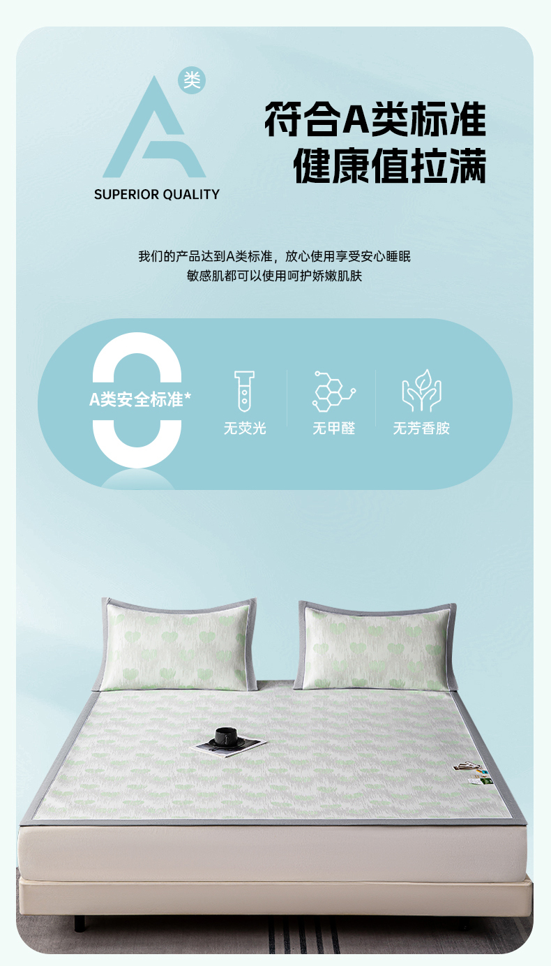 小牛席业 2025新款亲肤舒适爱心凉感冰丝席凉席席子系列 绿色