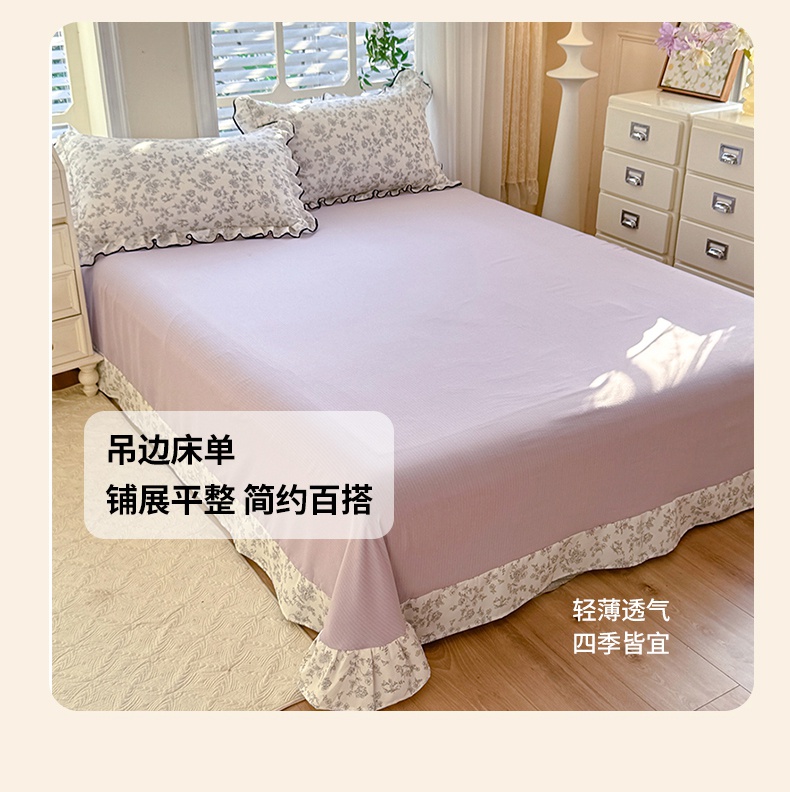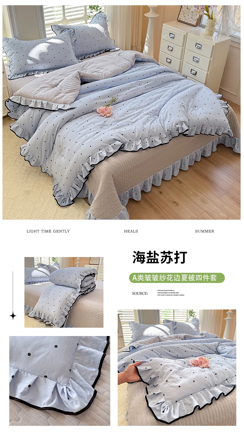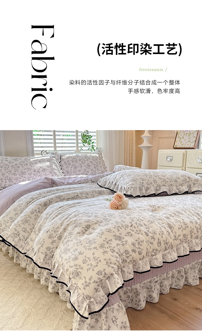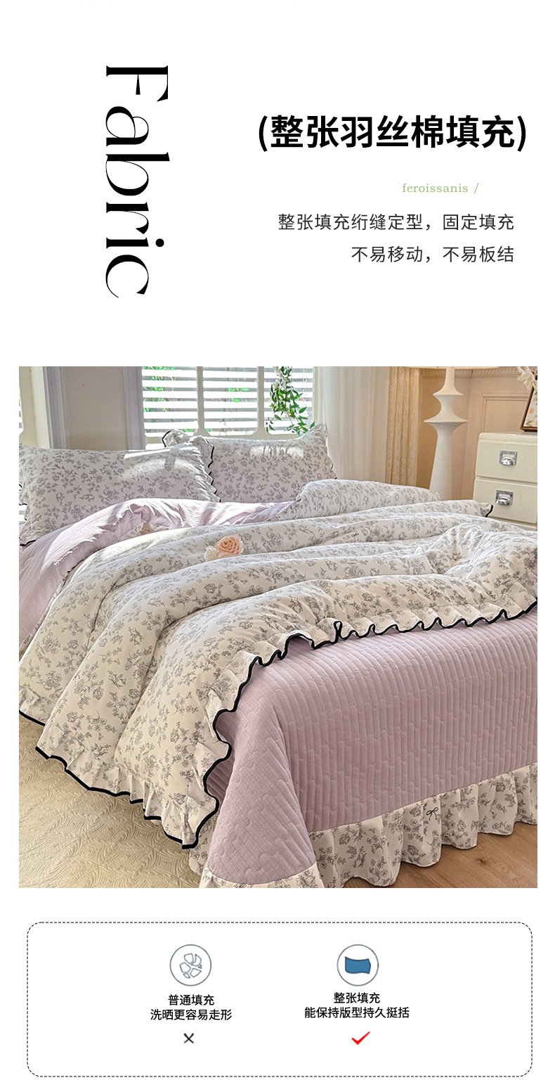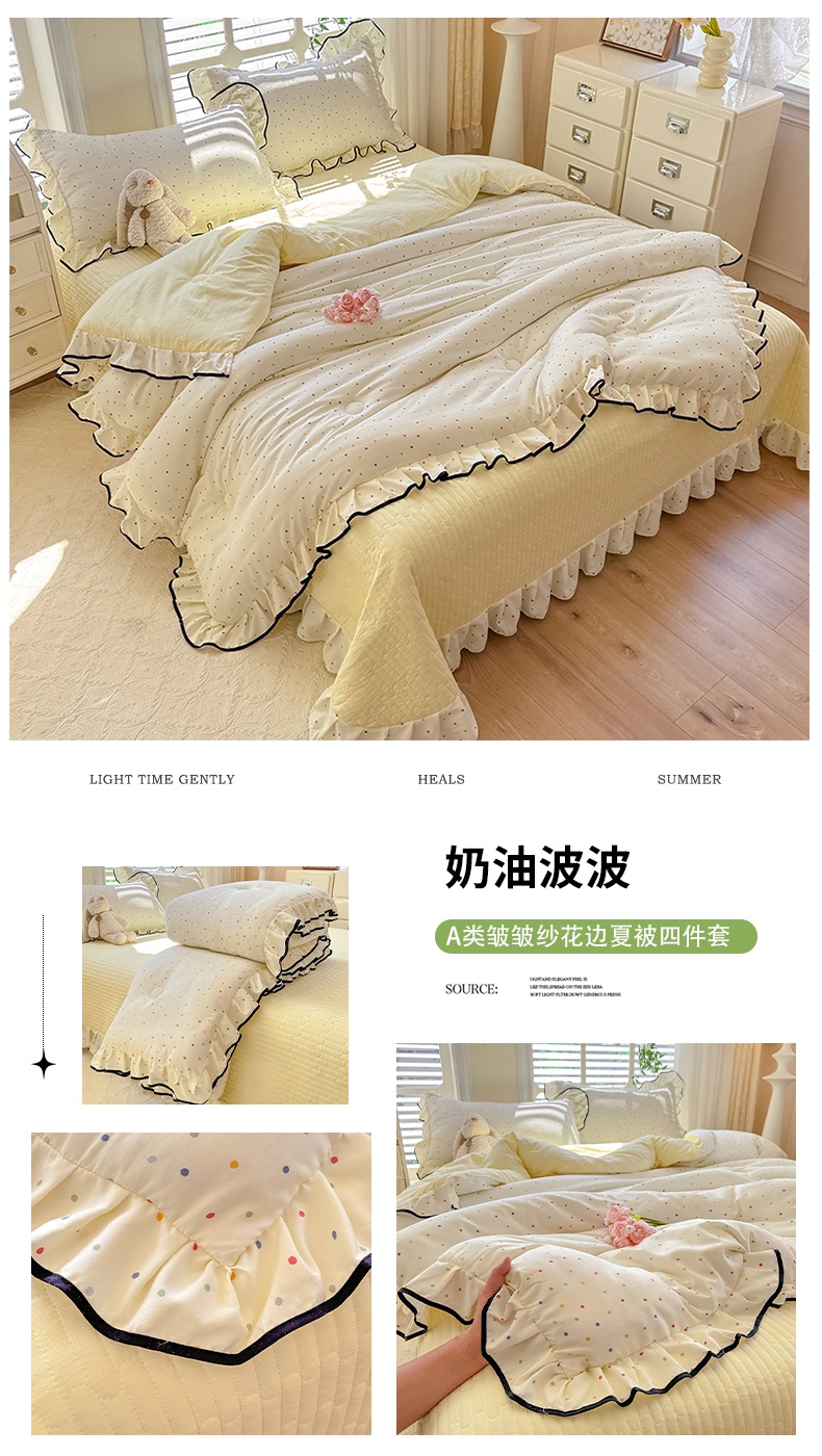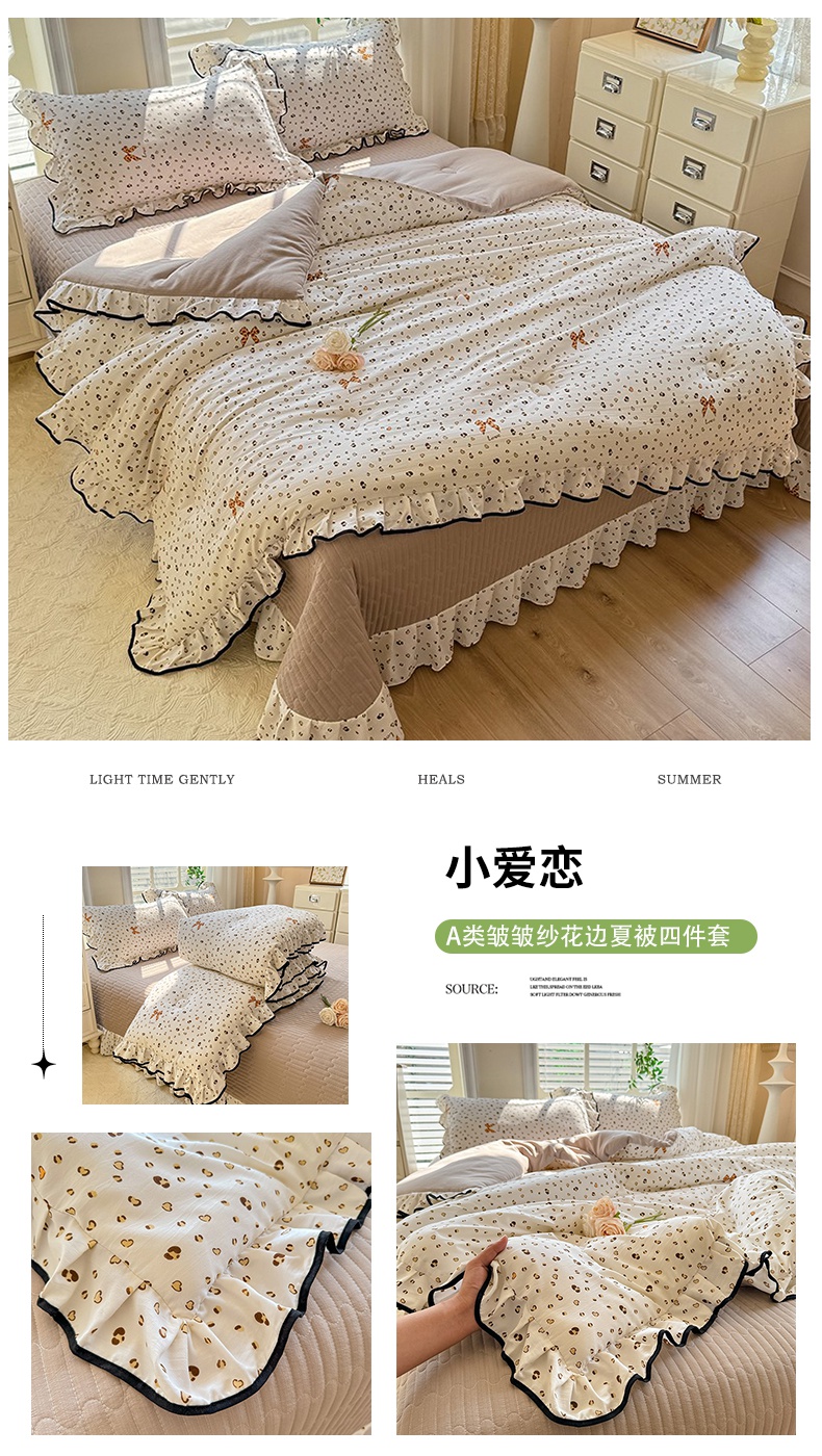 当前位置: 91家纺网 > 商品网购 > 床品套件 > 四件套 > 夏被四件套 > 韩约家纺 2025新款1皱皱纱花边夏被四件套 朝花夕拾