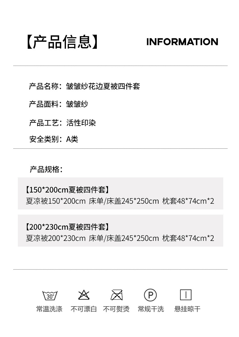 150*200cm夏被床盖款四件套 | ¥89.00 |