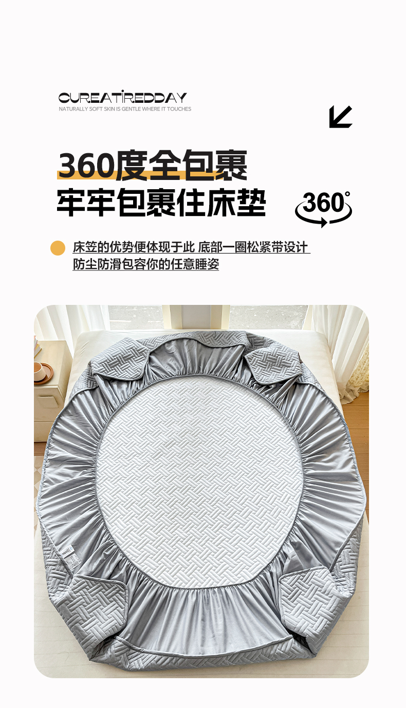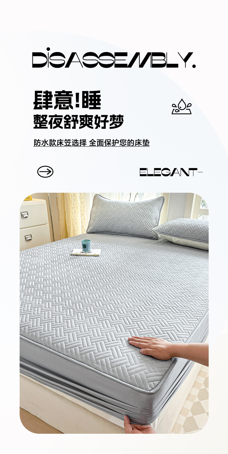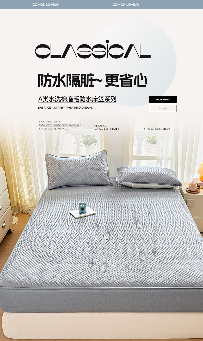 • 91家纺网 家纺一手货源 找家纺 卡伦家纺 2025新款水洗棉磨毛防水夹棉床笠 斜纹-雅致灰