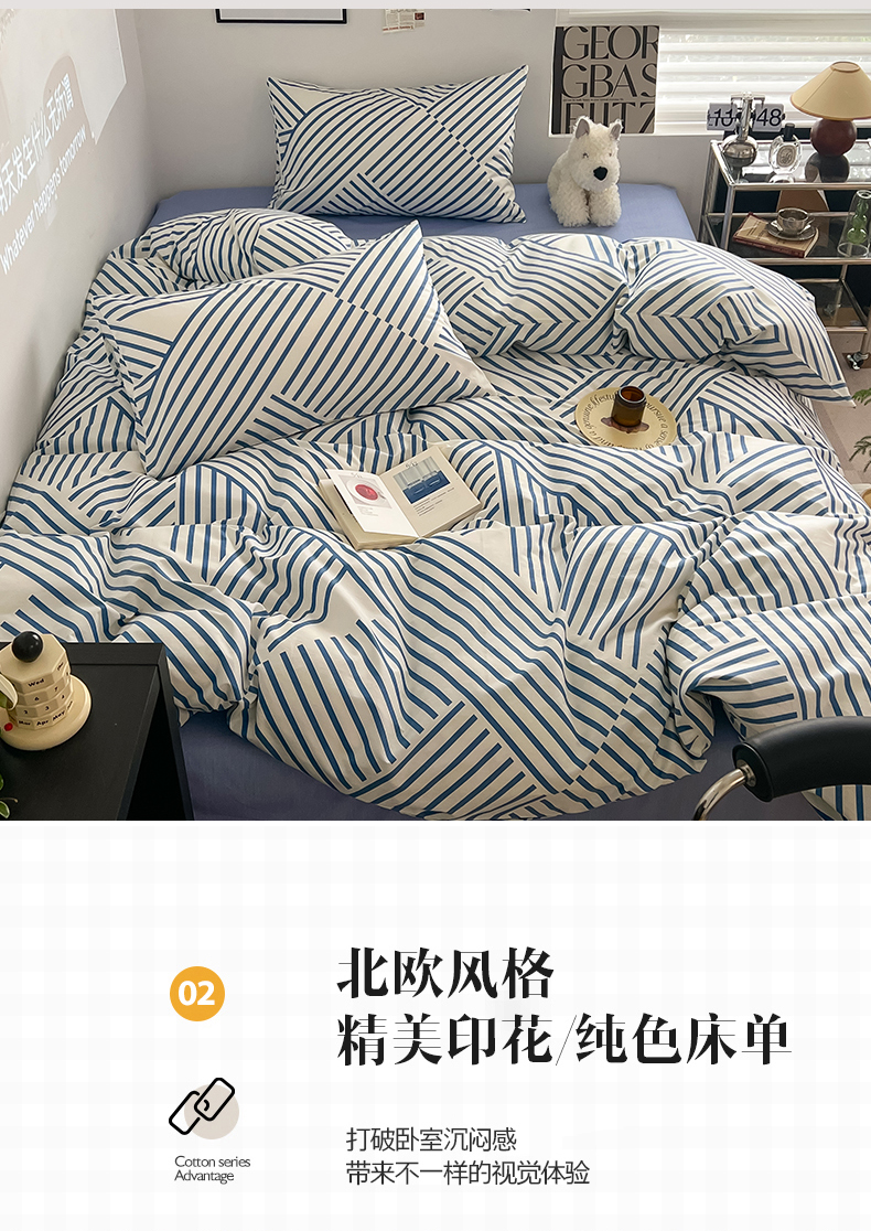 当前位置: 91家纺网 > 商品网购 > 床品套件 > 四件套 > 全棉普通四件套 > 吉象2025新款全棉印花北欧极简四件套系列 语初蓝