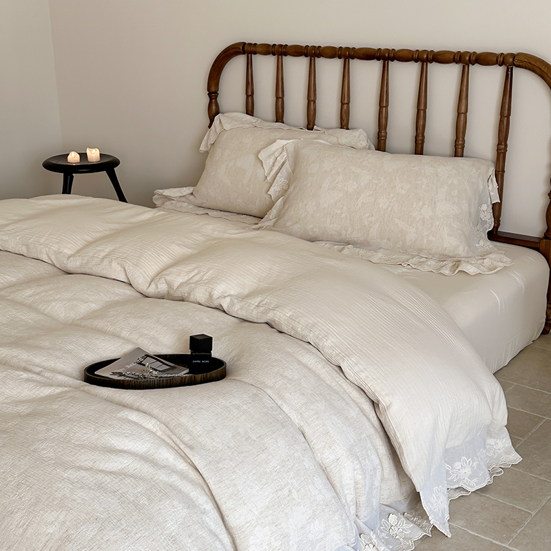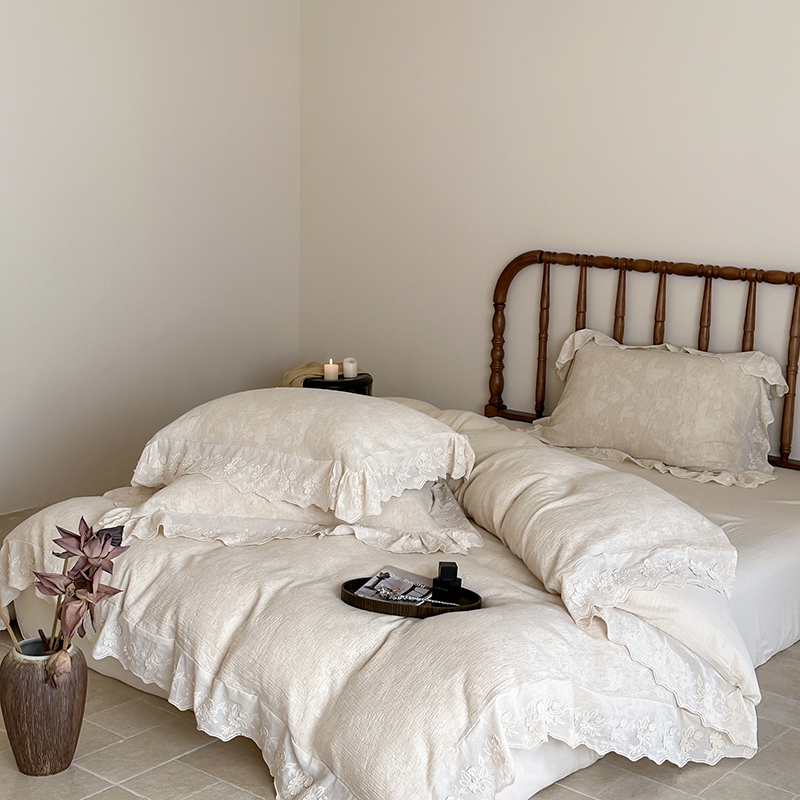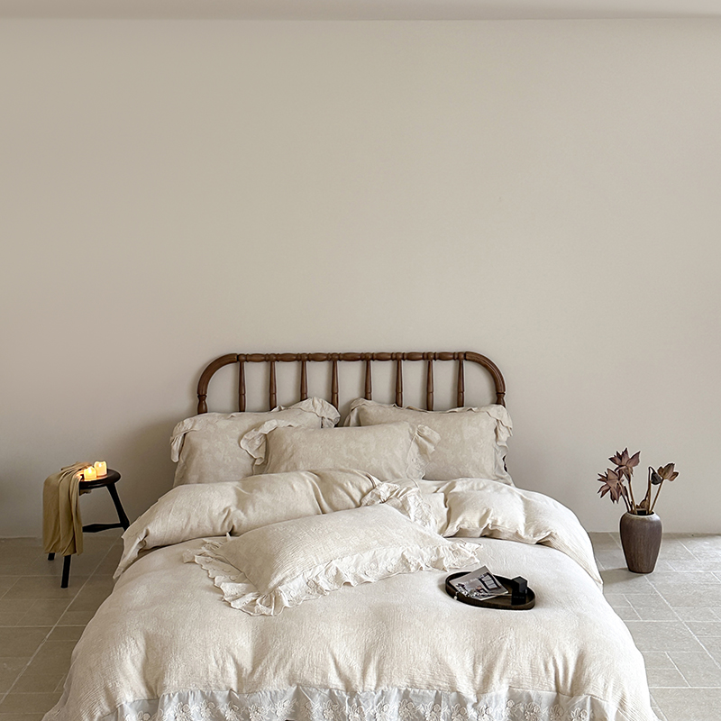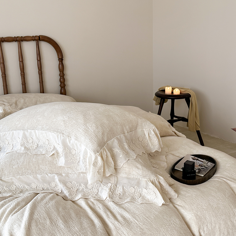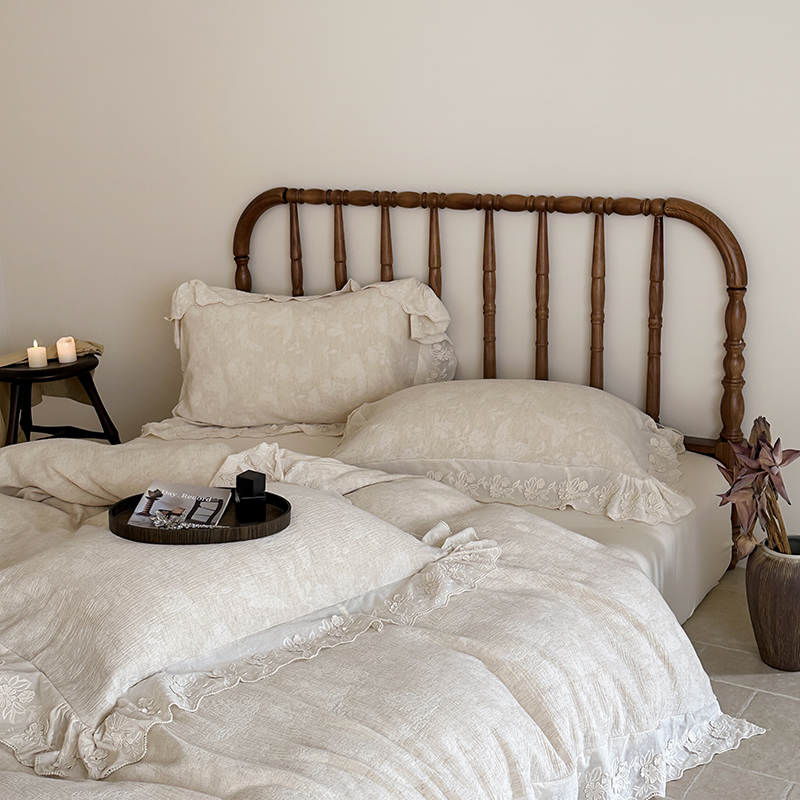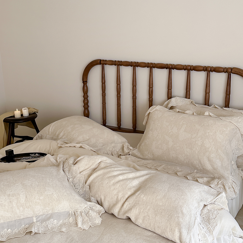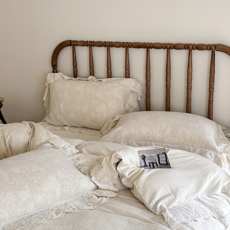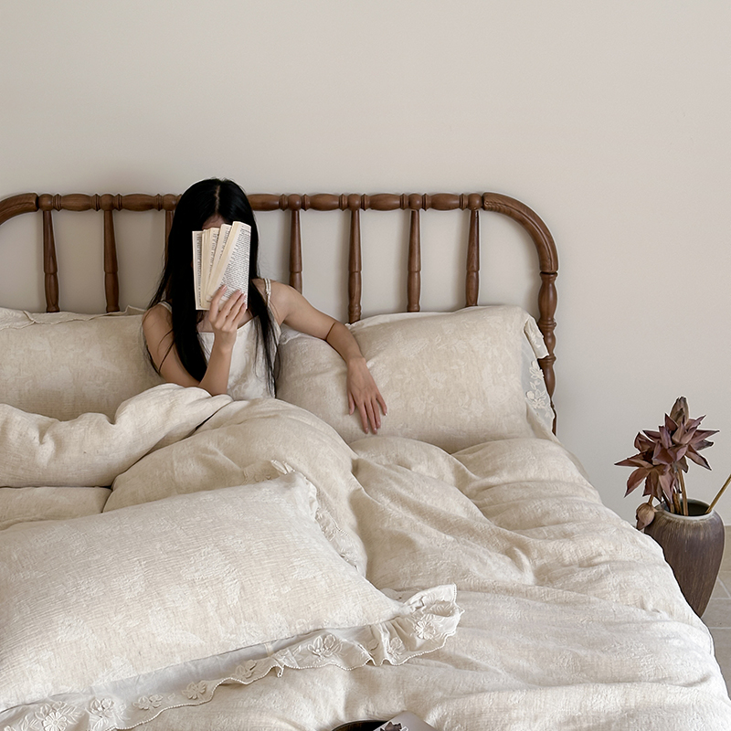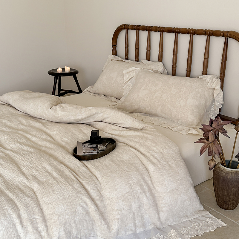 山舍家居2025新款纯棉棉麻色织提花刺绣花边款四件套-蝶梦晚落 蝶梦晚落-麻本色
