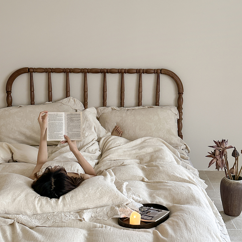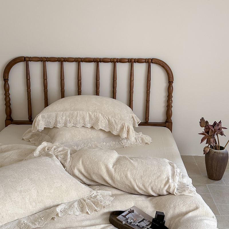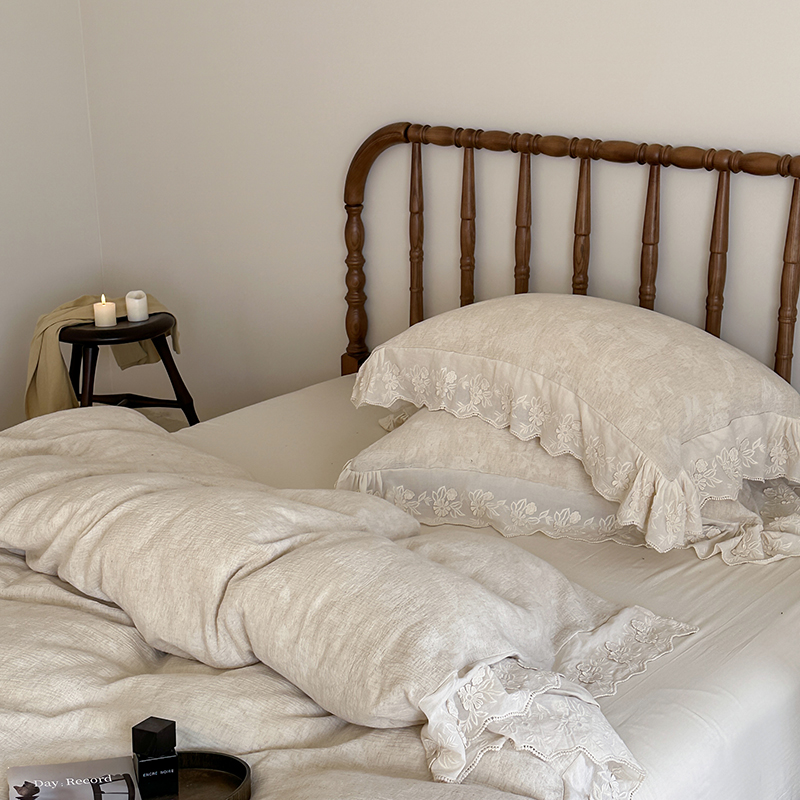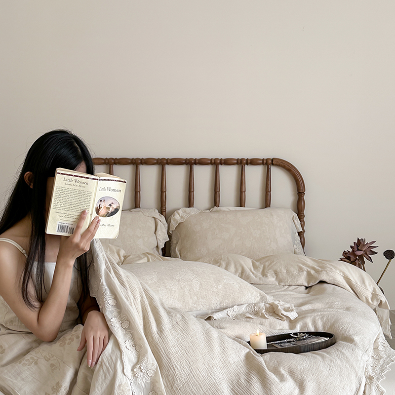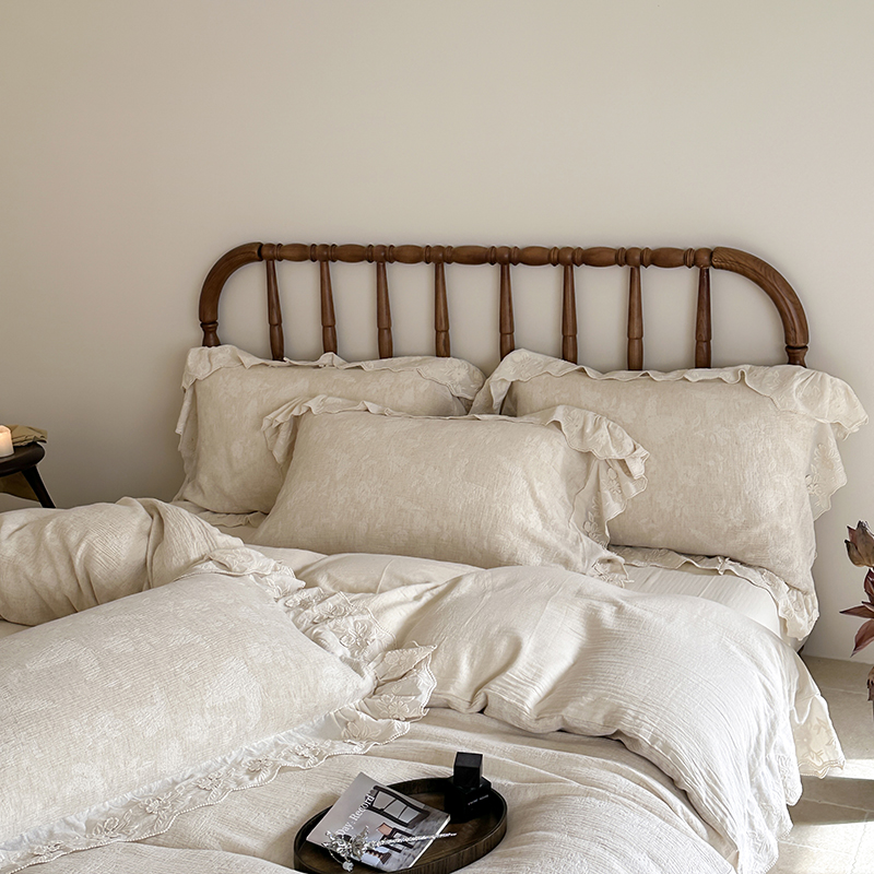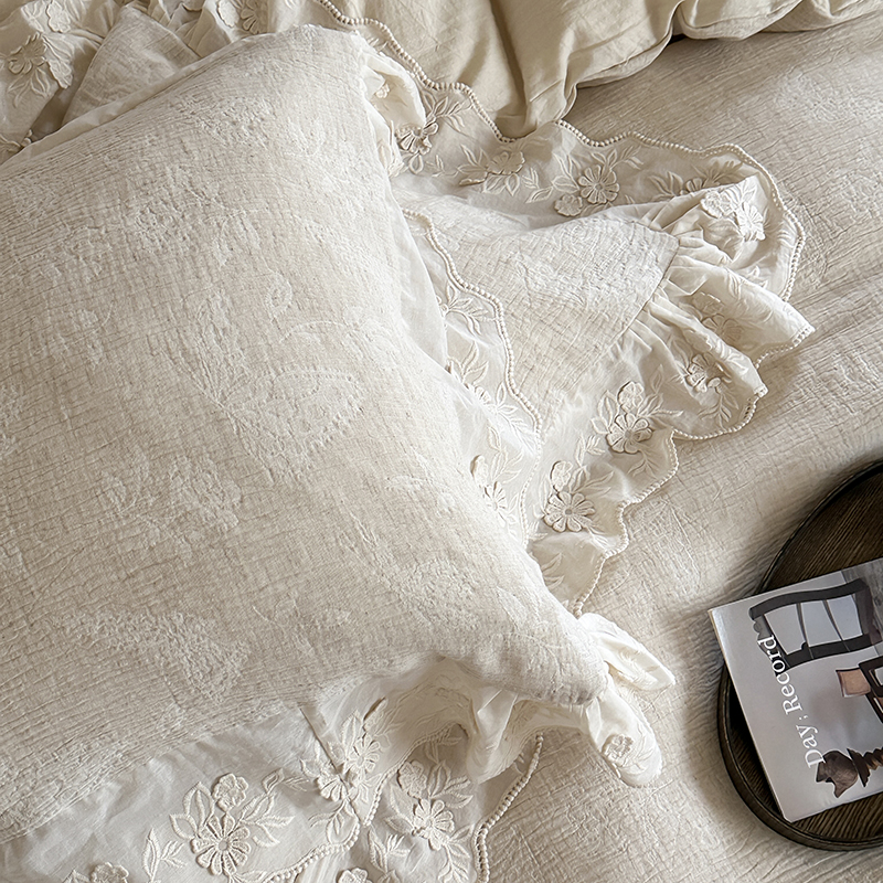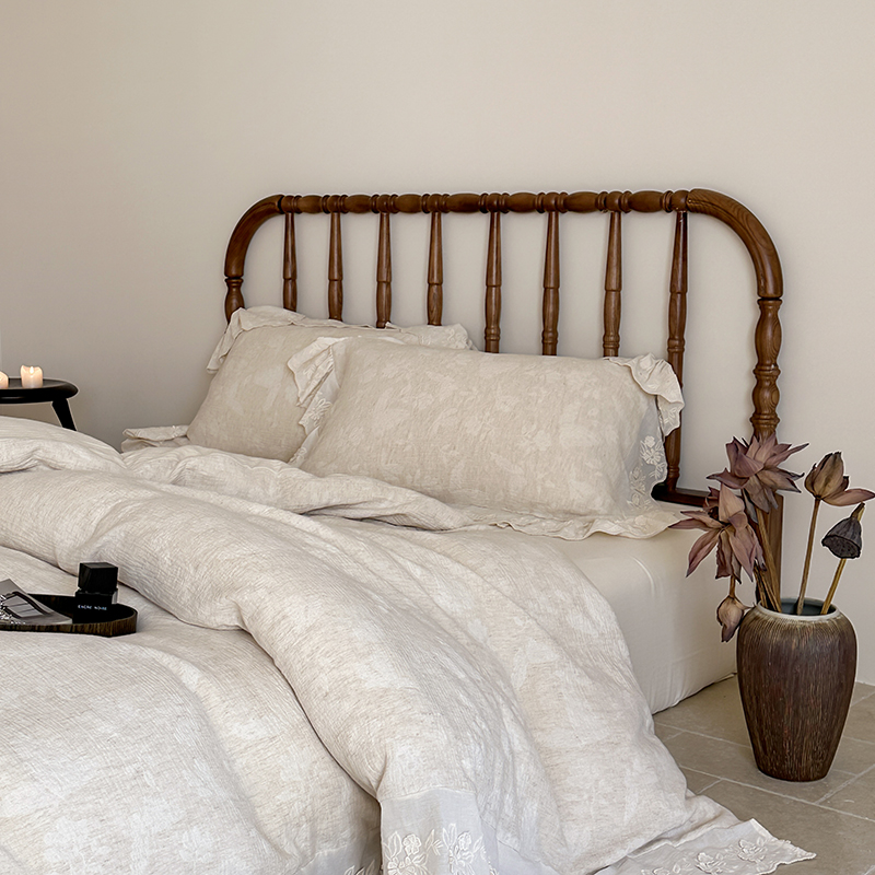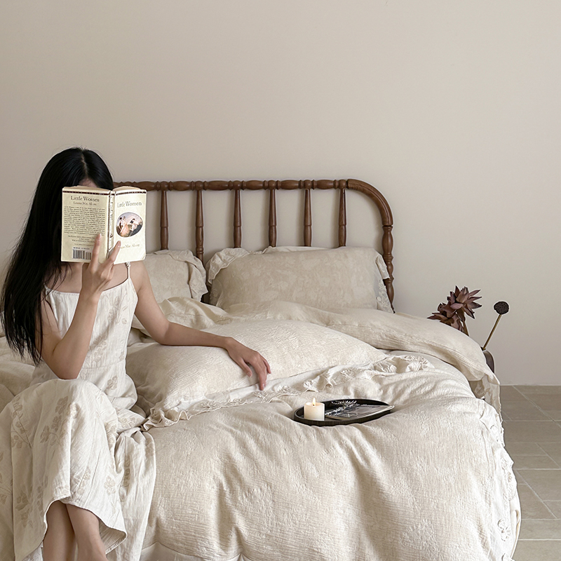 山舍家居2025新款纯棉棉麻色织提花刺绣花边款四件套-蝶梦晚落 蝶梦晚落-麻本色