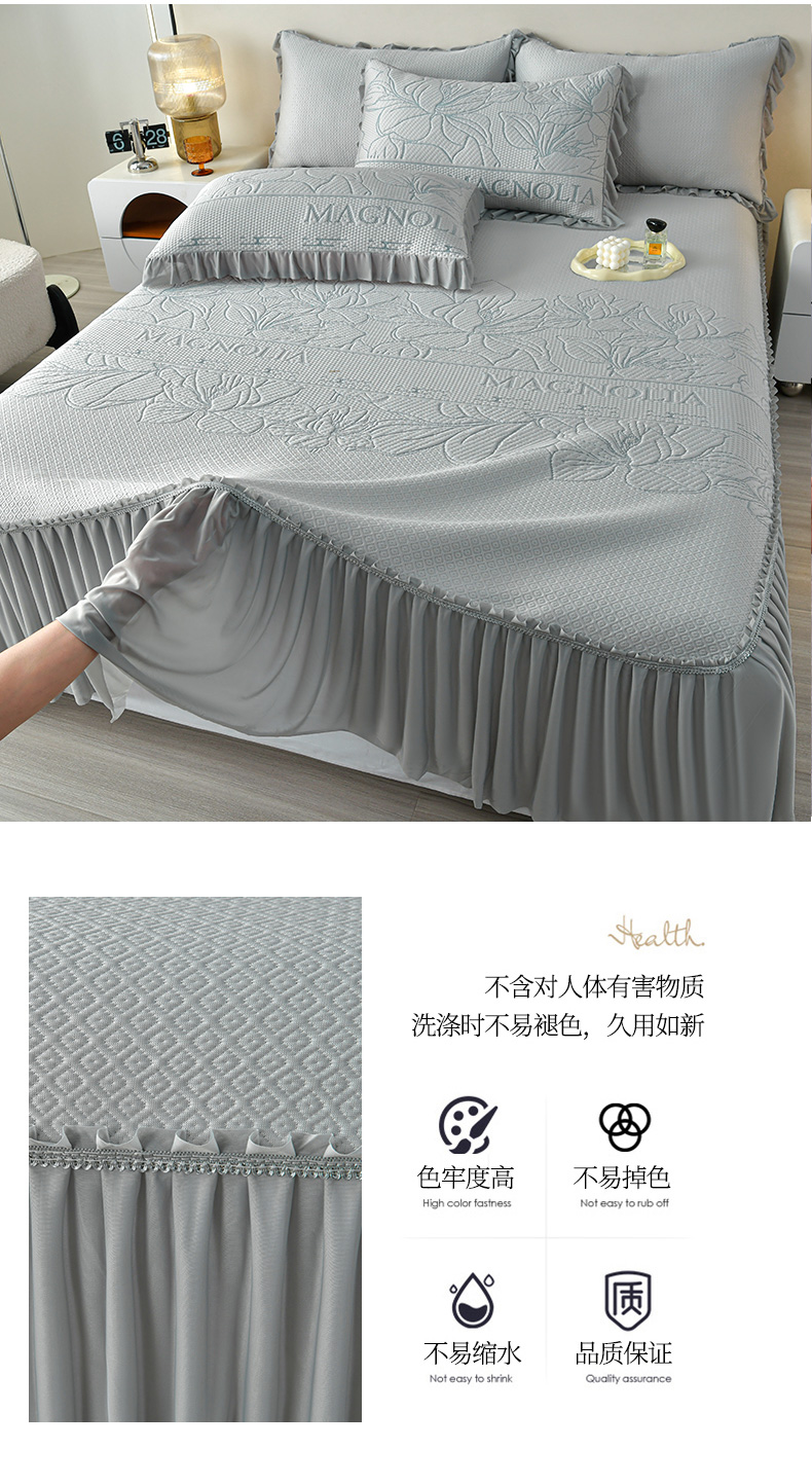 (总)诺梵家纺 2026新款PE冰豆豆冰丝凉席床裙款-玫瑰系列,红玫瑰,灰玫瑰,蓝玫瑰,绿玫瑰