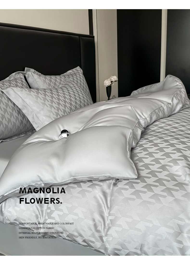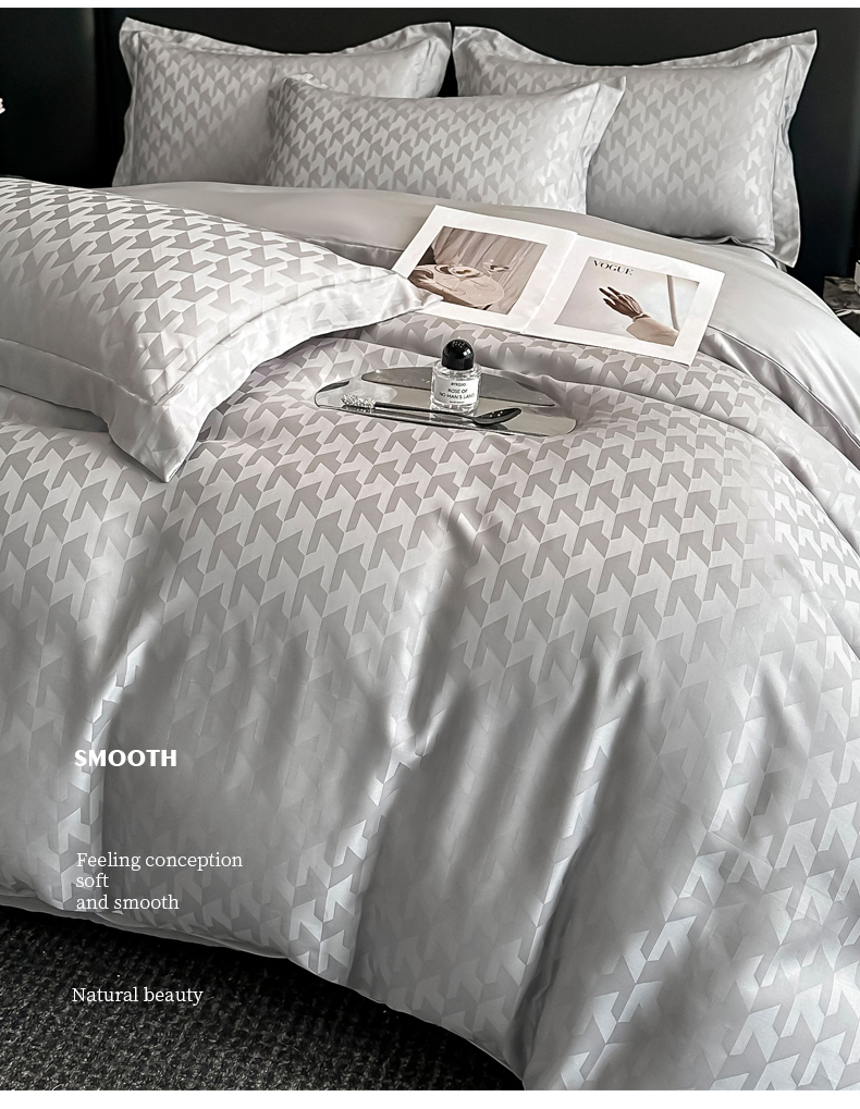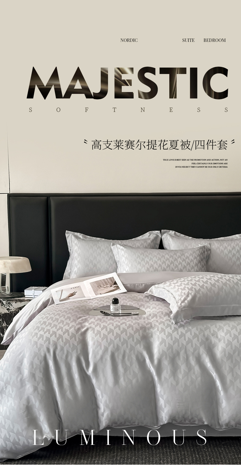 慕晨 2025新款莱赛尔提花四件套高级简奢款天丝夏被4件套直播热款 贝立雅