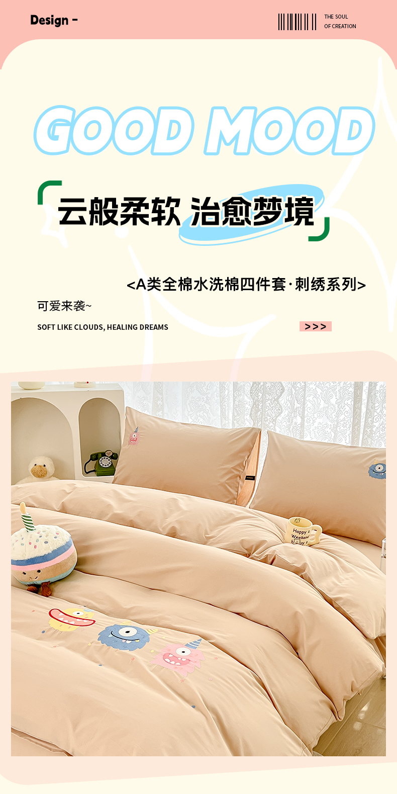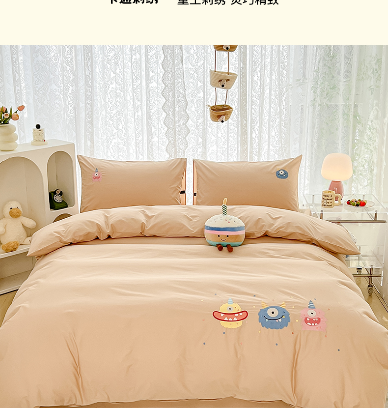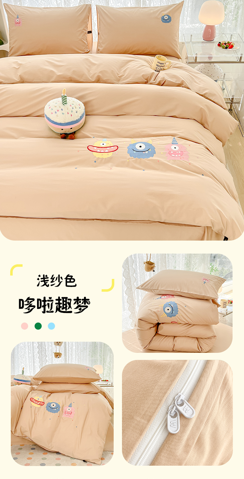 当前位置: 91家纺网 > 商品网购 > 床品套件 > 四件套 > 全棉普通四件套 > 曼町家居 2025春夏新款40支全棉纯棉水洗棉刺绣四件套 哆啦趣梦--浅纱色