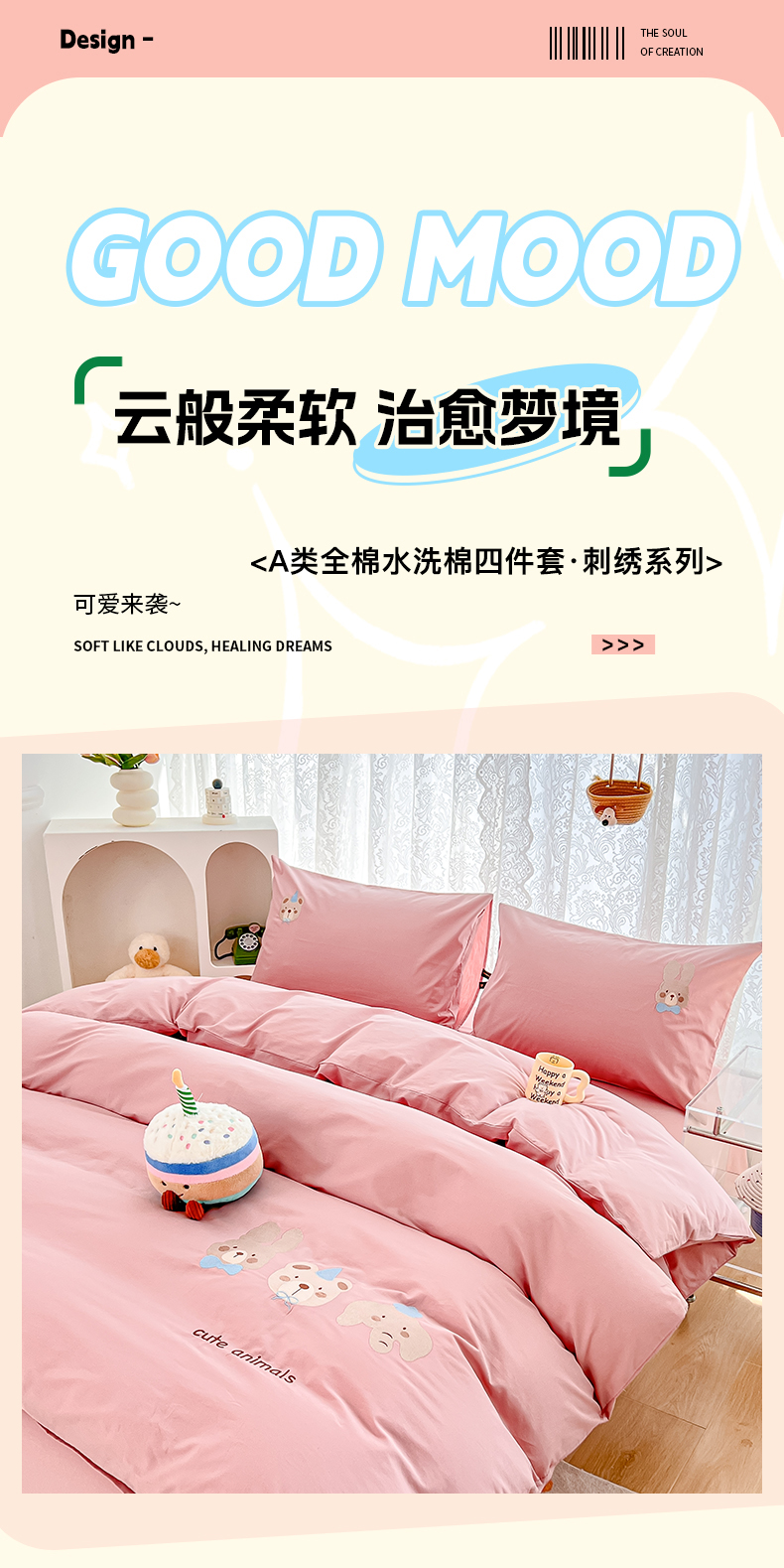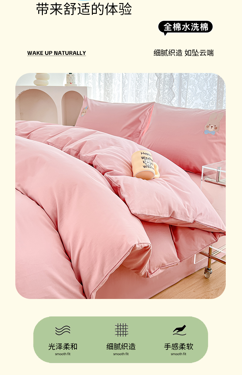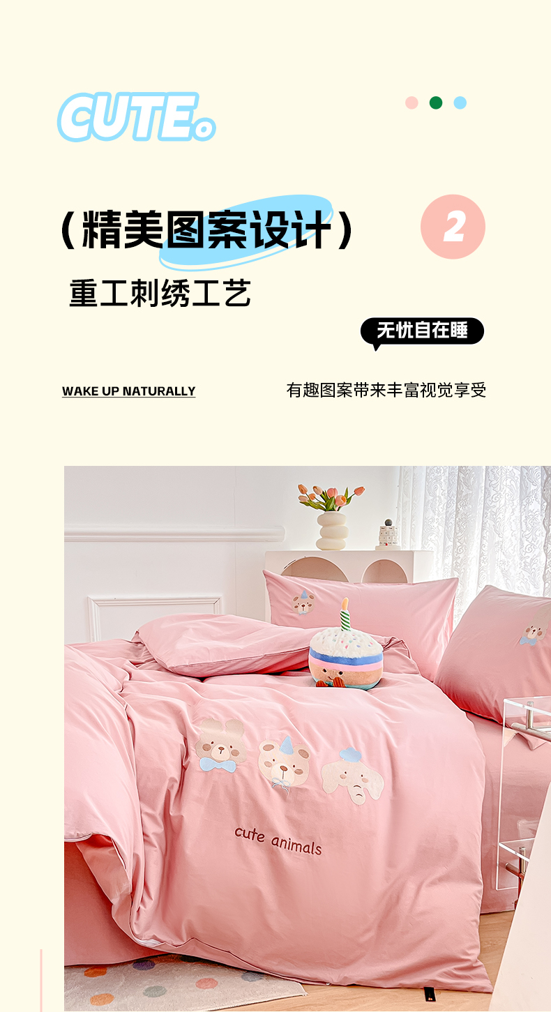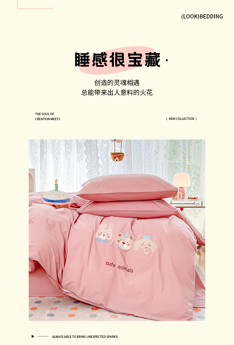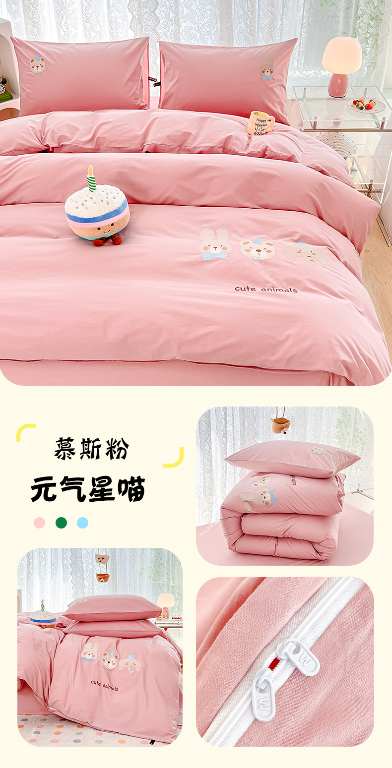 当前位置: 91家纺网 > 商品网购 > 床品套件 > 四件套 > 全棉普通四件套 > 曼町家居 2025春夏新款40支全棉纯棉水洗棉刺绣四件套 元气星喵-慕斯粉
