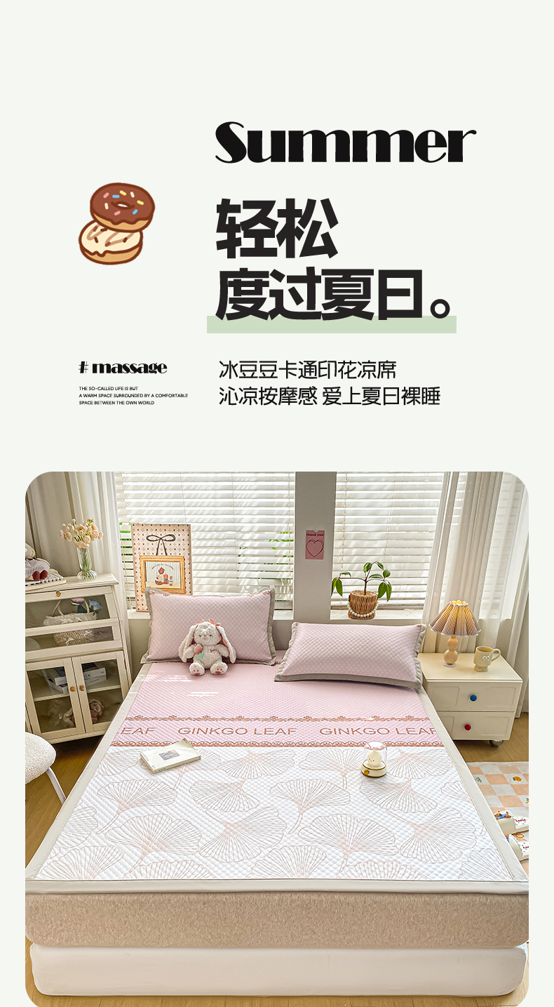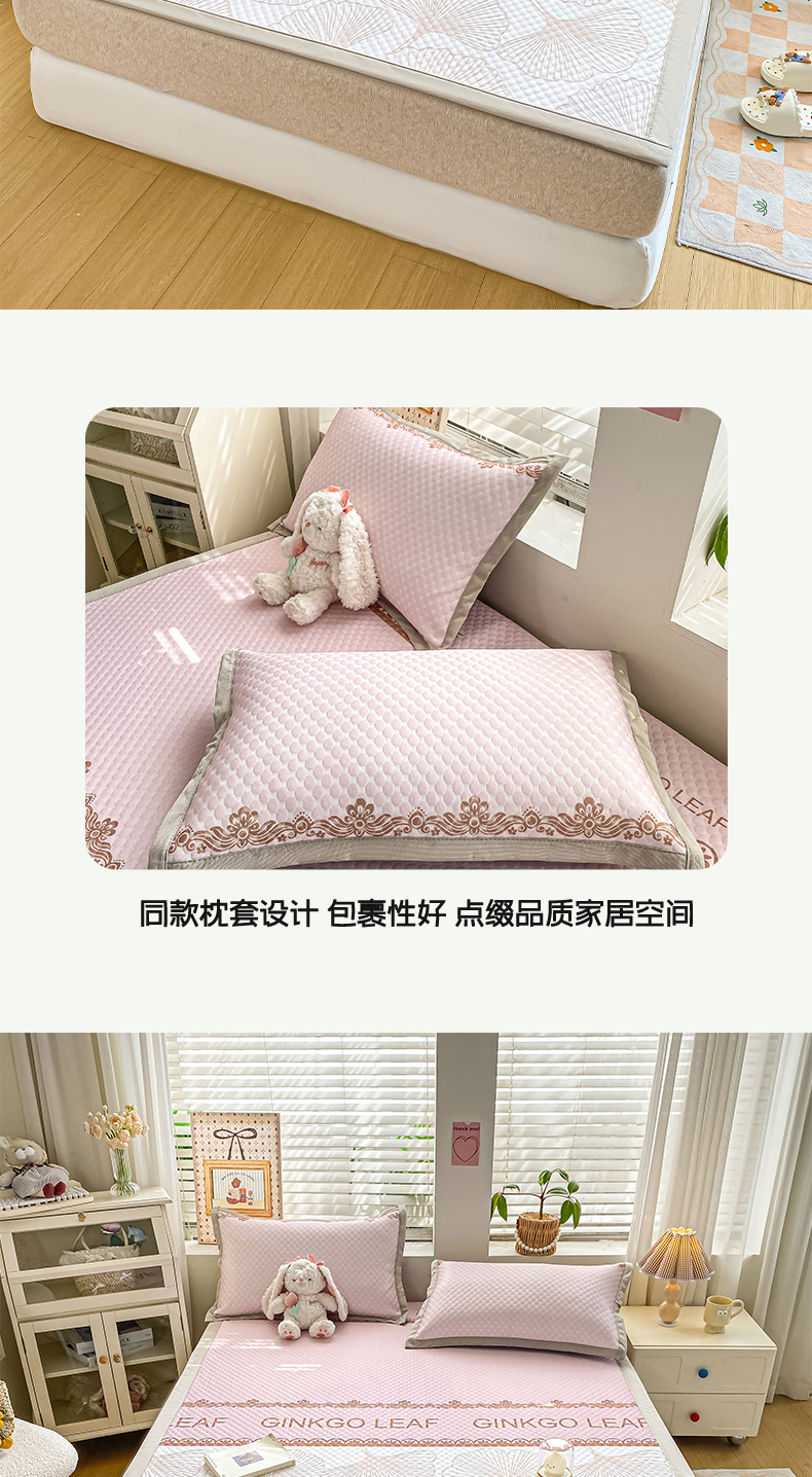 • 91家纺网 家纺一手货源 找家纺 慕梵家居 2025新款冰豆豆数码印花圆网凉席款凉席席子三件套 羽毛