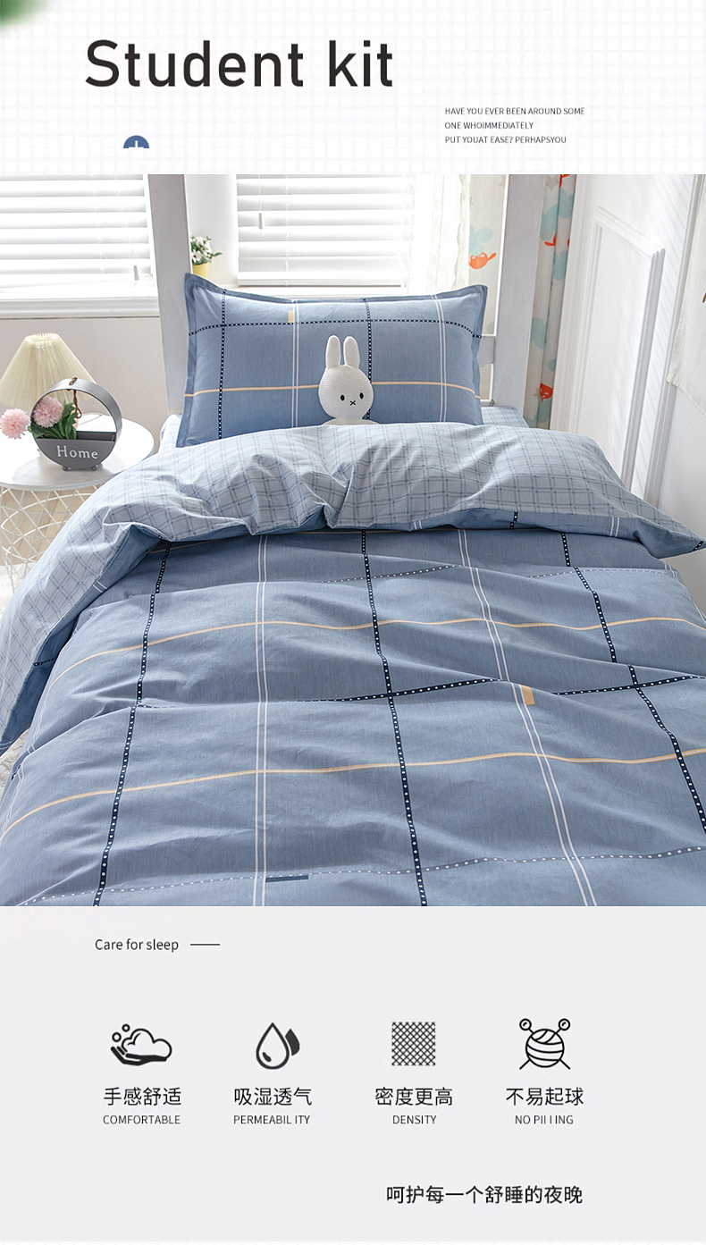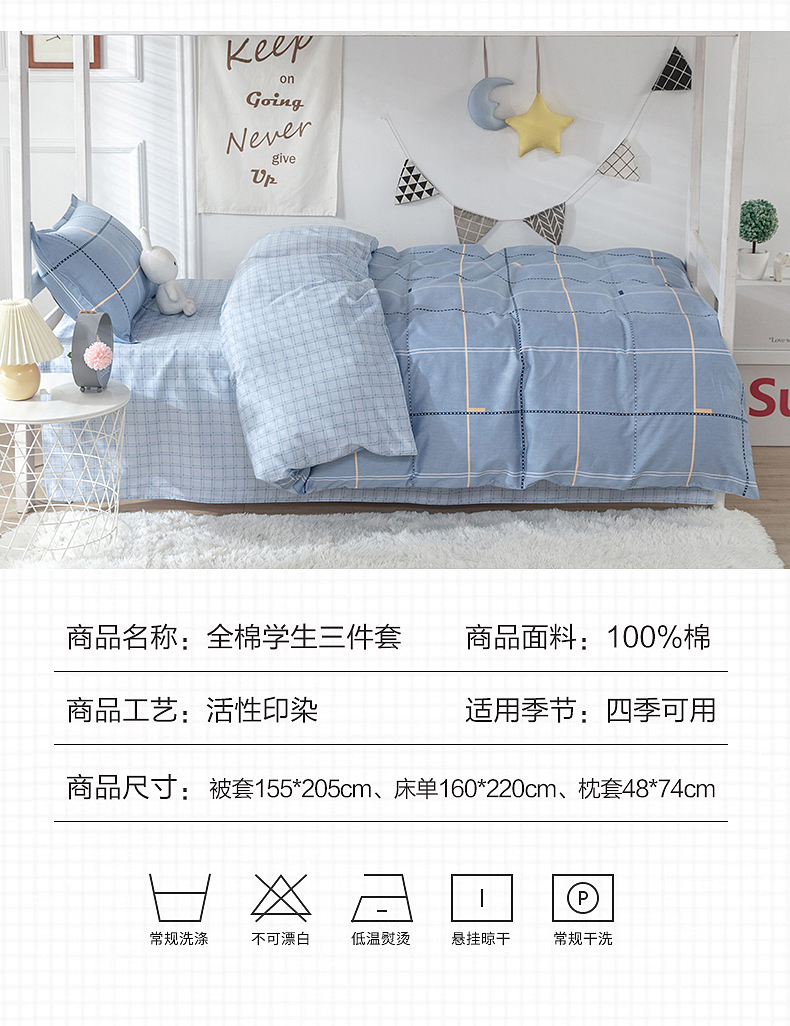 当前位置: 91家纺网 > 商品网购 > 床品套件 > 三件套 > 提供买家秀爆款花型不断货)2025新款全棉AB版13372学生宿舍印花三件套双面纯棉床单款上下铺单人 菲扬-蓝