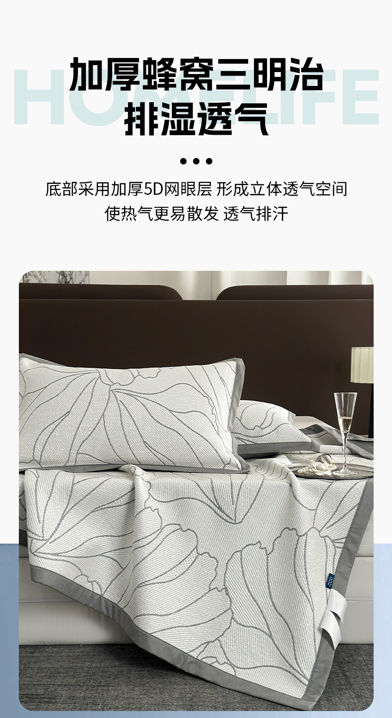 麦伦家居 2025新款3D凉豆豆凉席提花如画系列 格韵