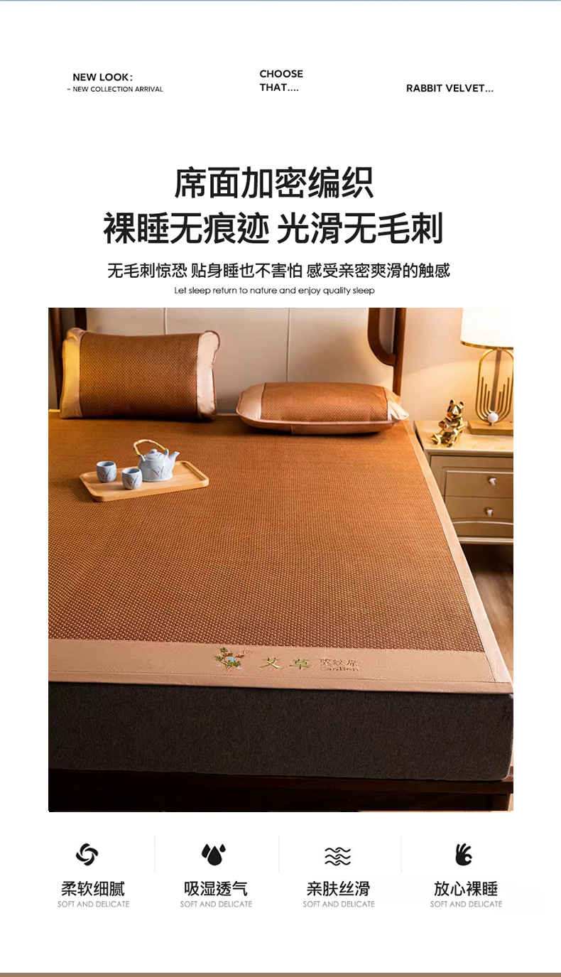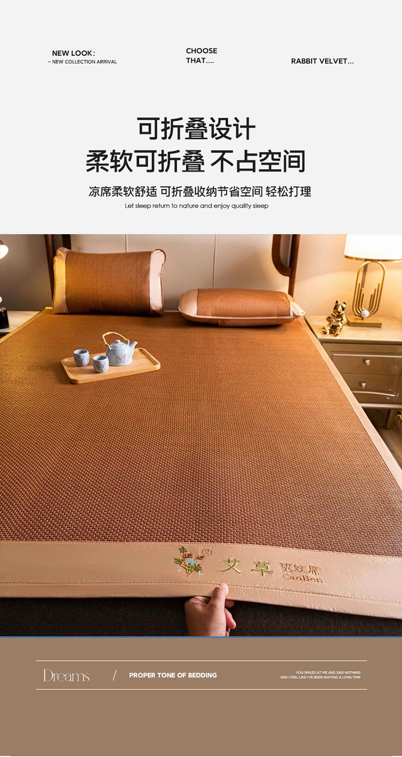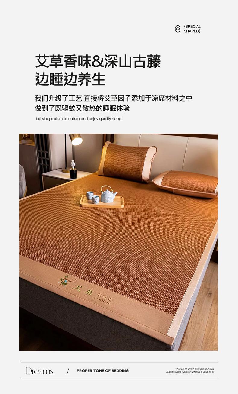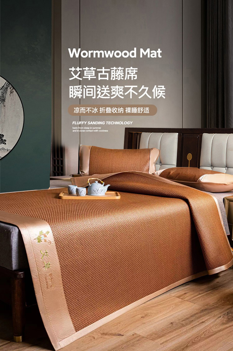 商品名称:梵希良品家纺 2025新款艾草加厚藤席夏季双人席子可折叠凉席 艾草罗马格