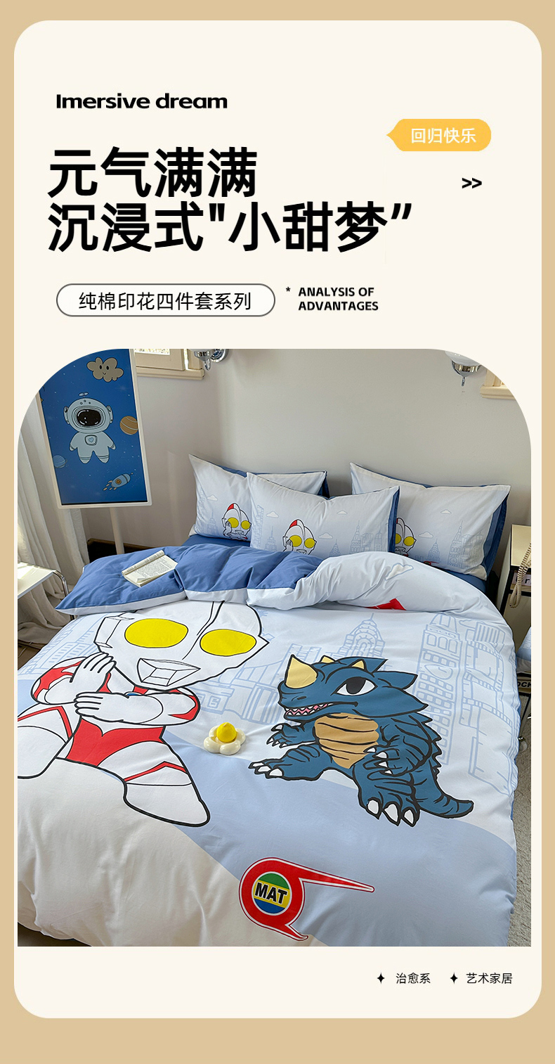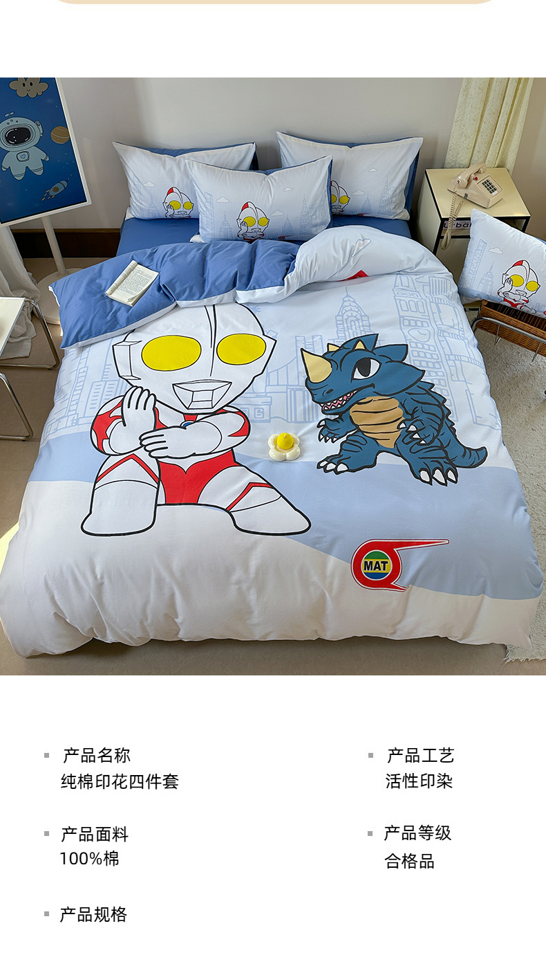 当前位置: 91家纺网 > 商品网购 > 床品套件 > 四件套 > 全棉普通四件套 > 金爱家 2025新款纯棉数码印花系列四件套-奥特曼 D-城市猎人