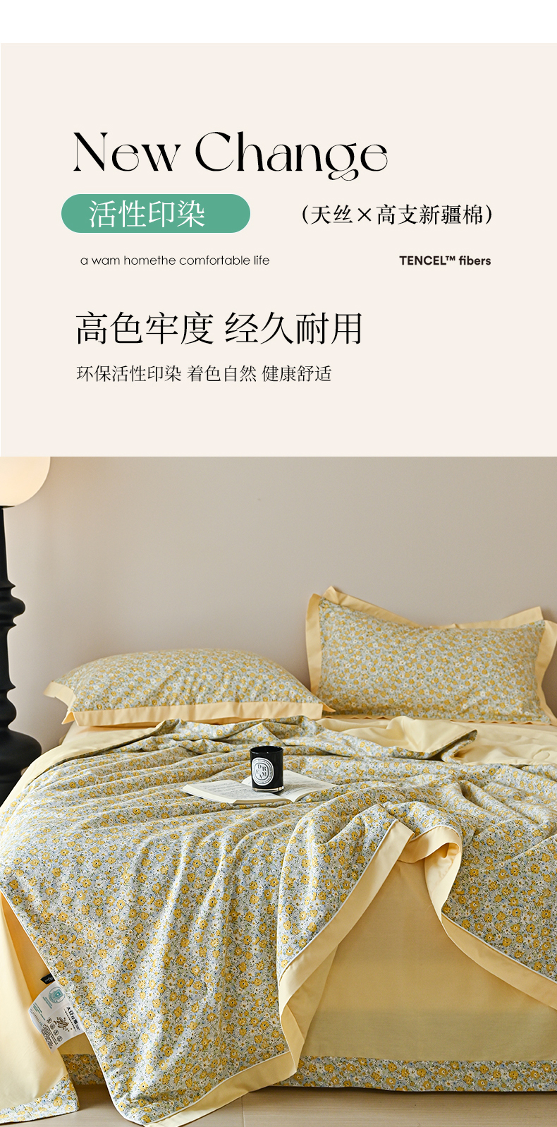 商品名称:金喜 2025新款天丝棉大豆印花夏凉被夏被四件套 黛西