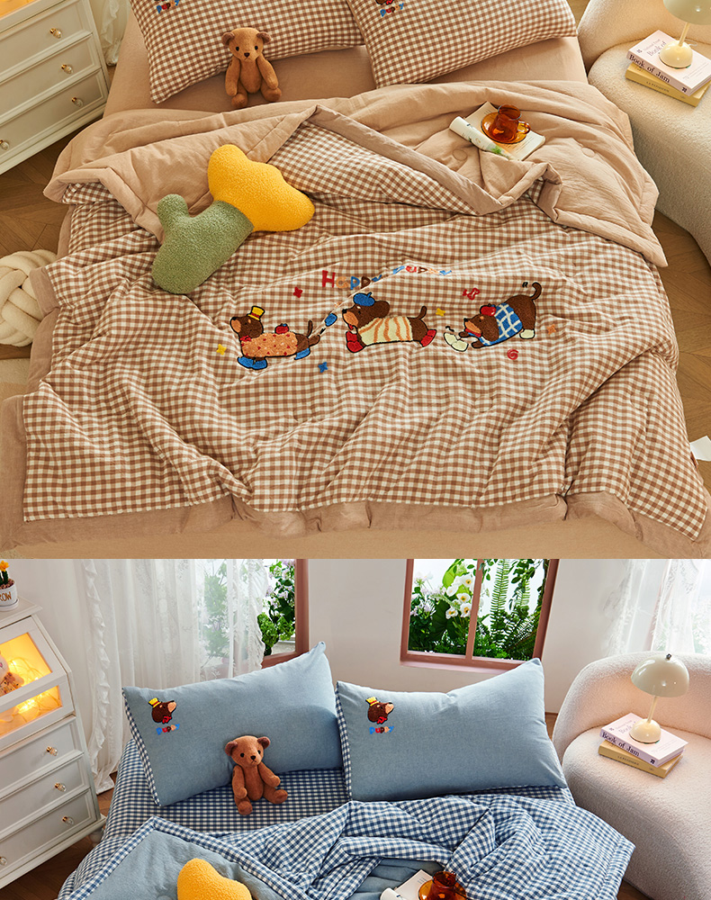 2025新款色织全棉纯棉绣花单夏被夏凉被空调被 汉堡家族