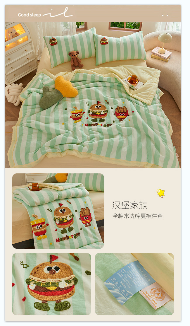 商品名称:2025新款色织全棉纯棉绣花单夏被夏凉被空调被 汉堡家族