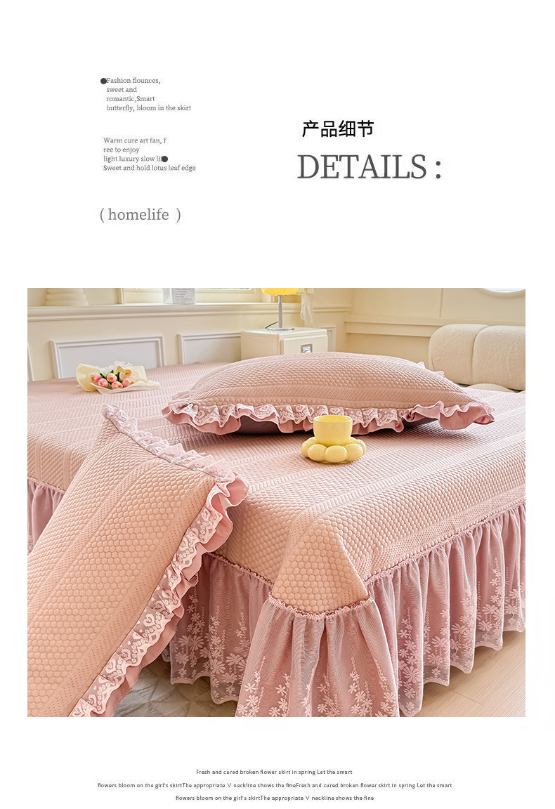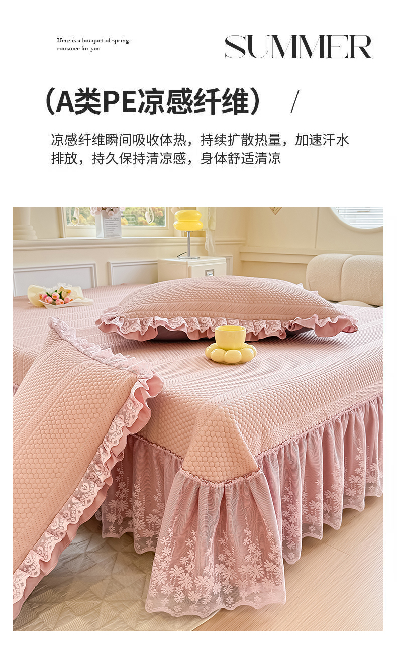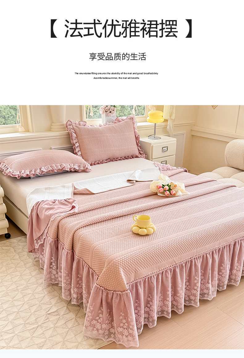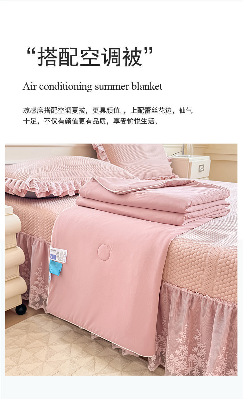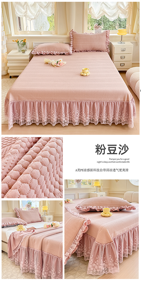 商品名称:慧菲 2025新款PE高分子凉感席床裙凉席三件套 【6-7斤】 粉豆沙