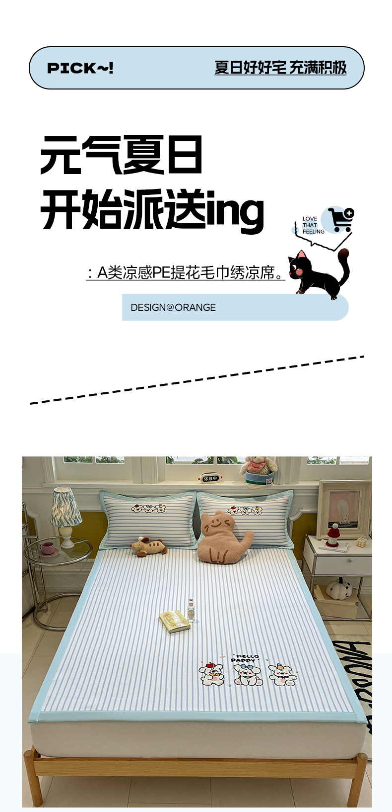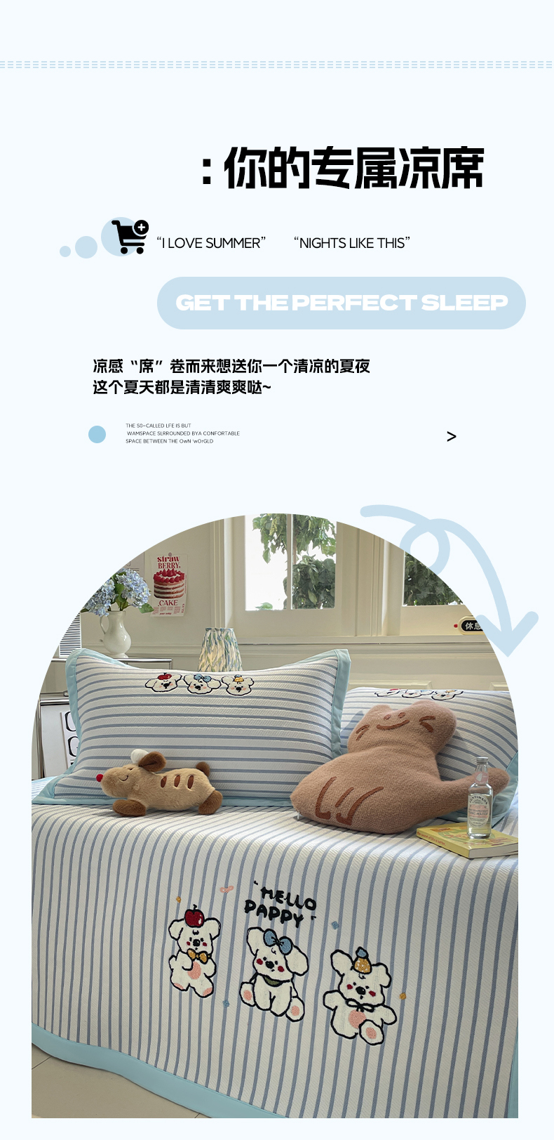 商品名称:2025年新款PE提花卡通毛巾绣凉席系列场景一 欢乐小狗