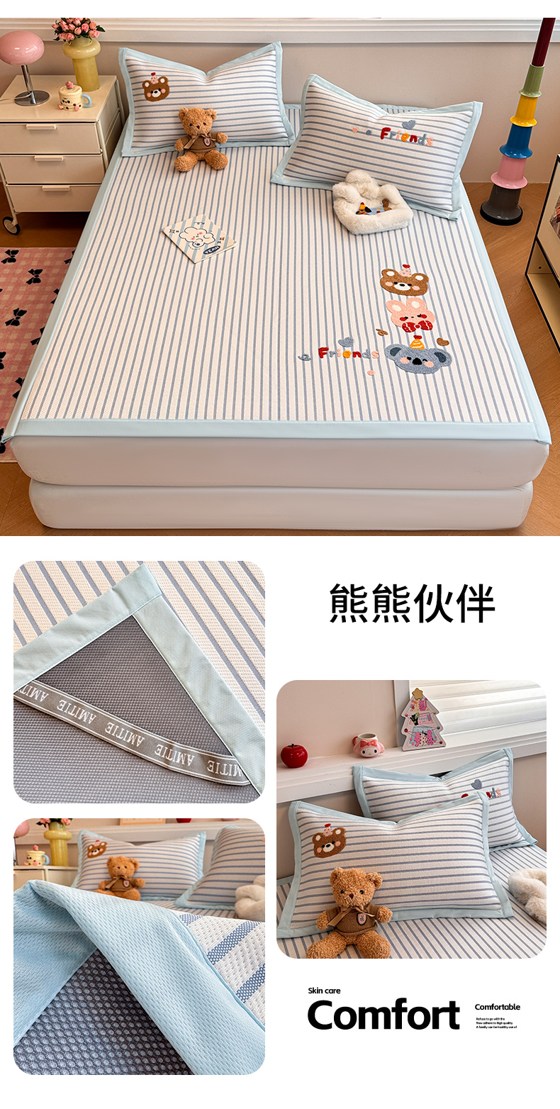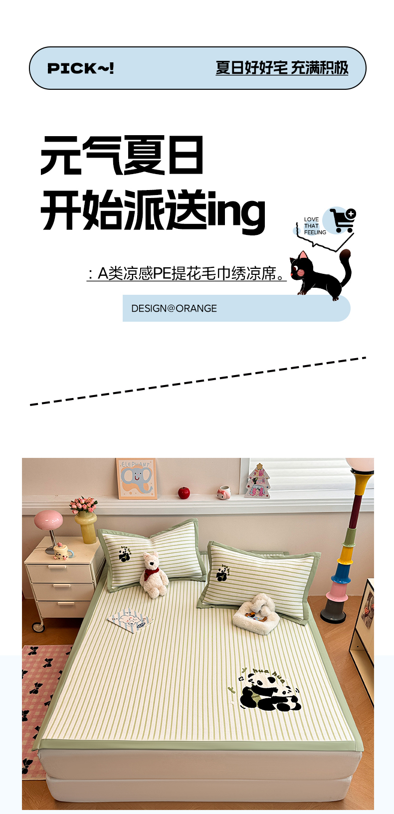商品名称:蓝邻家纺 2025年新款PE提花卡通毛巾绣凉席系列场景二 花花