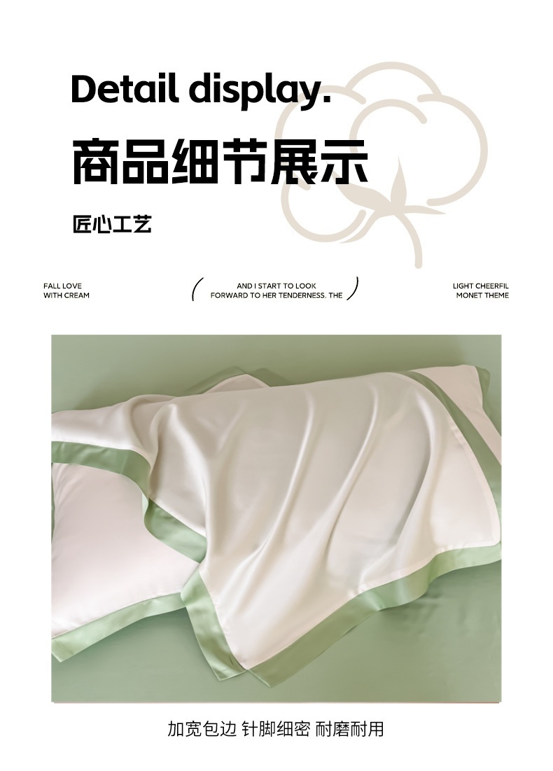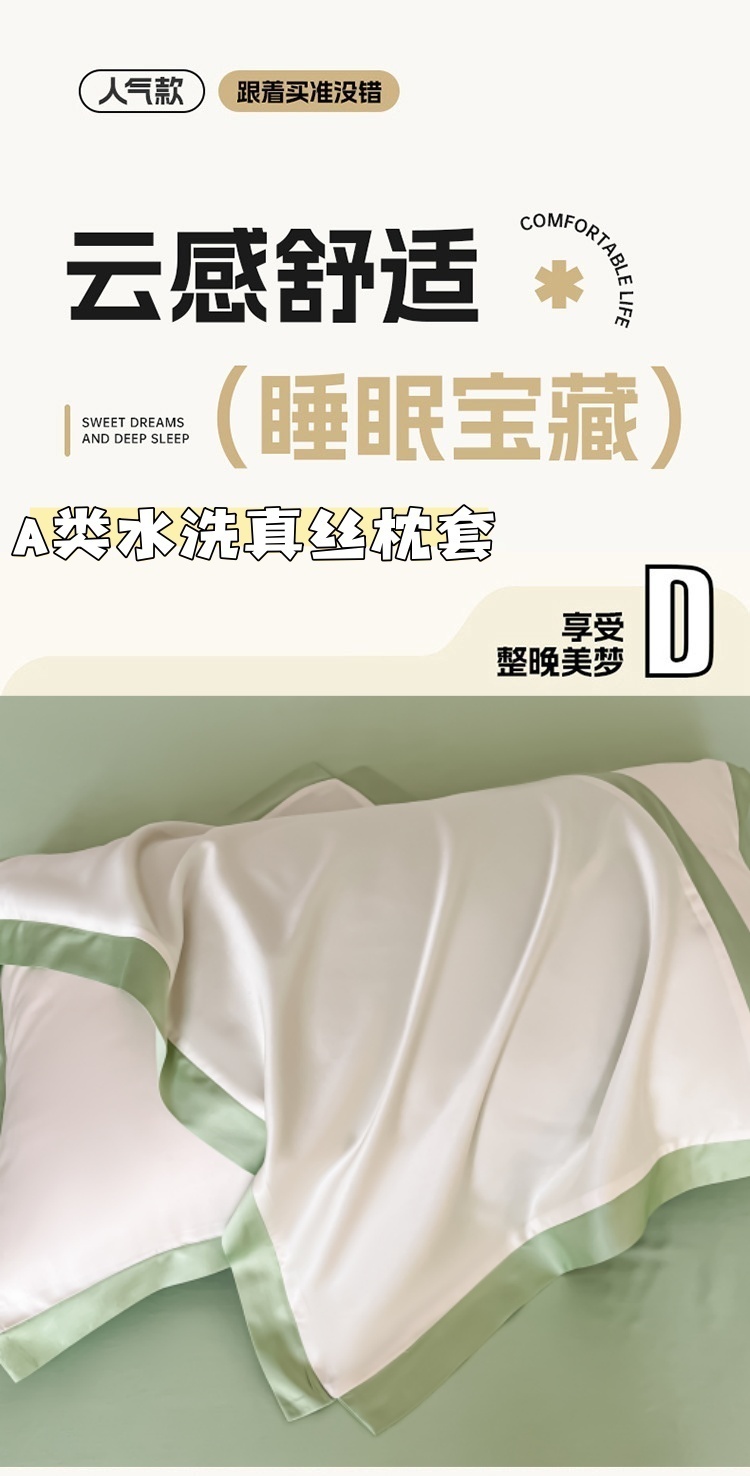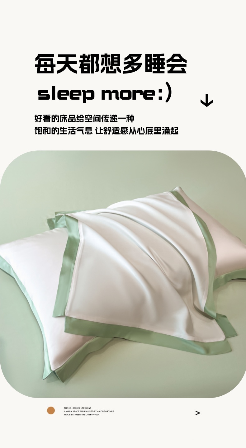 商品名称:圣比熊 2025新款水洗真丝枕套冰丝凉感枕头套夏天薄款枕芯套 奶油浅绿