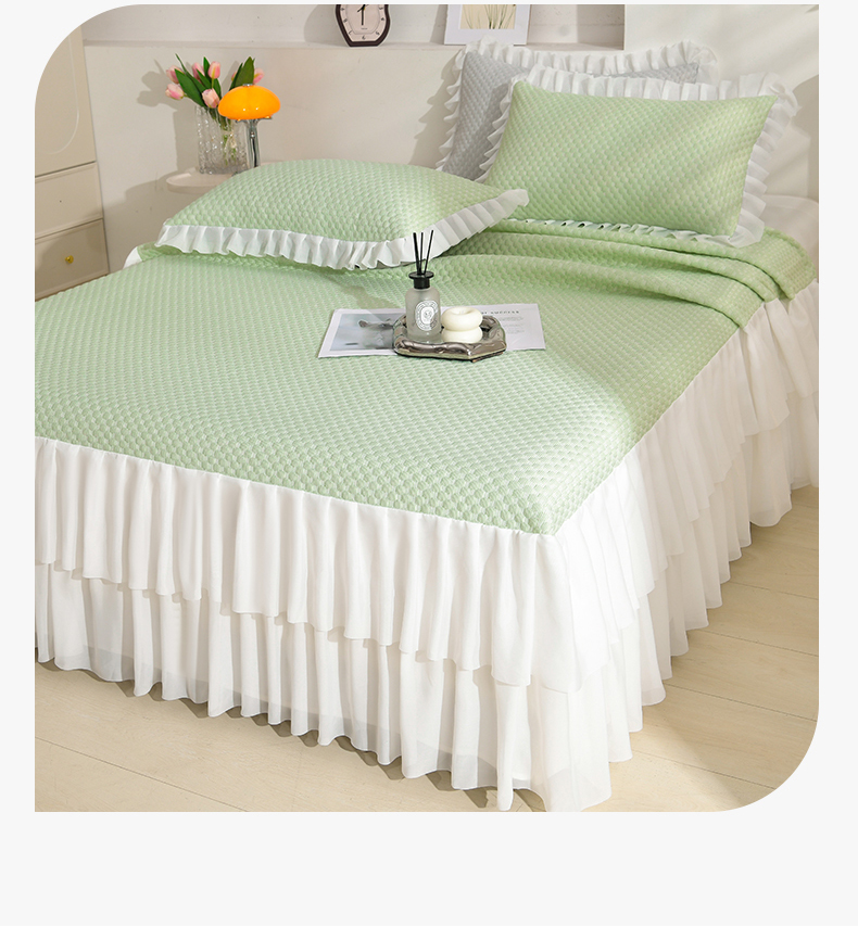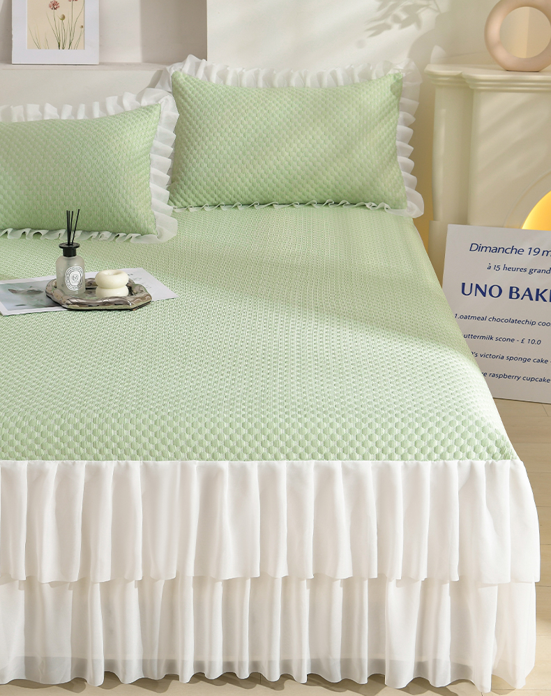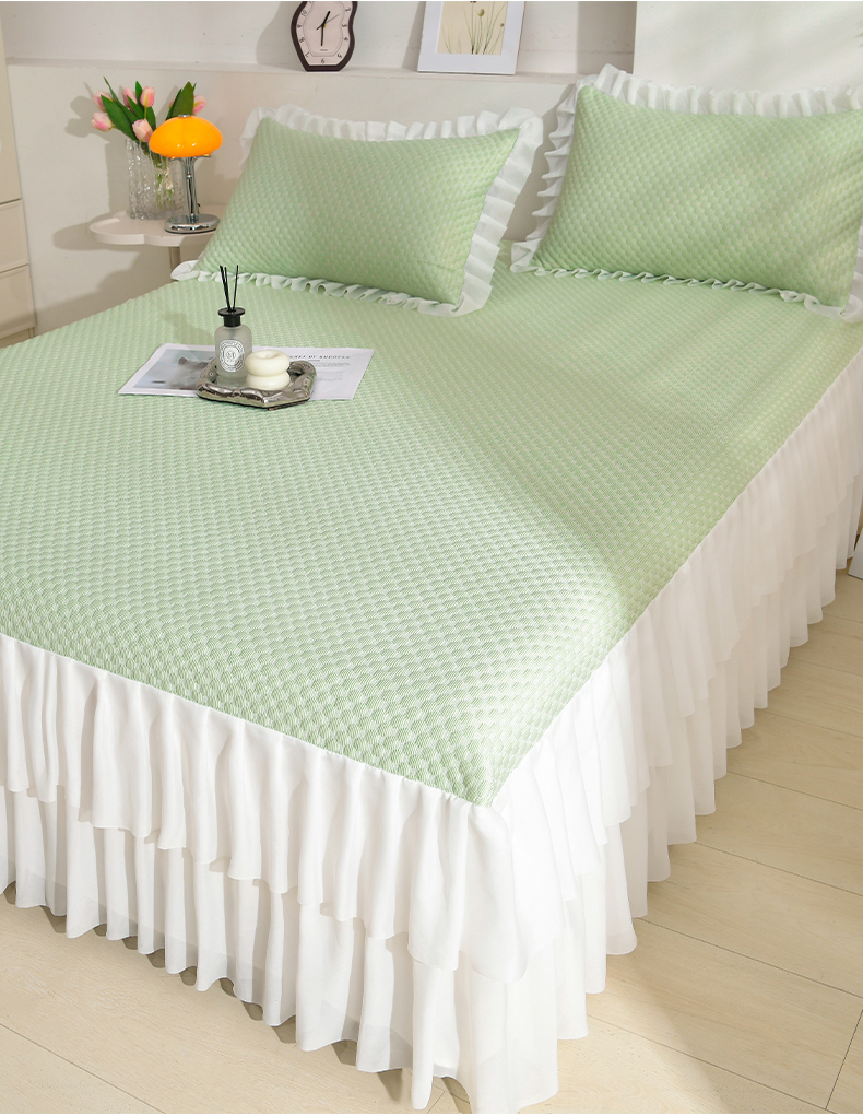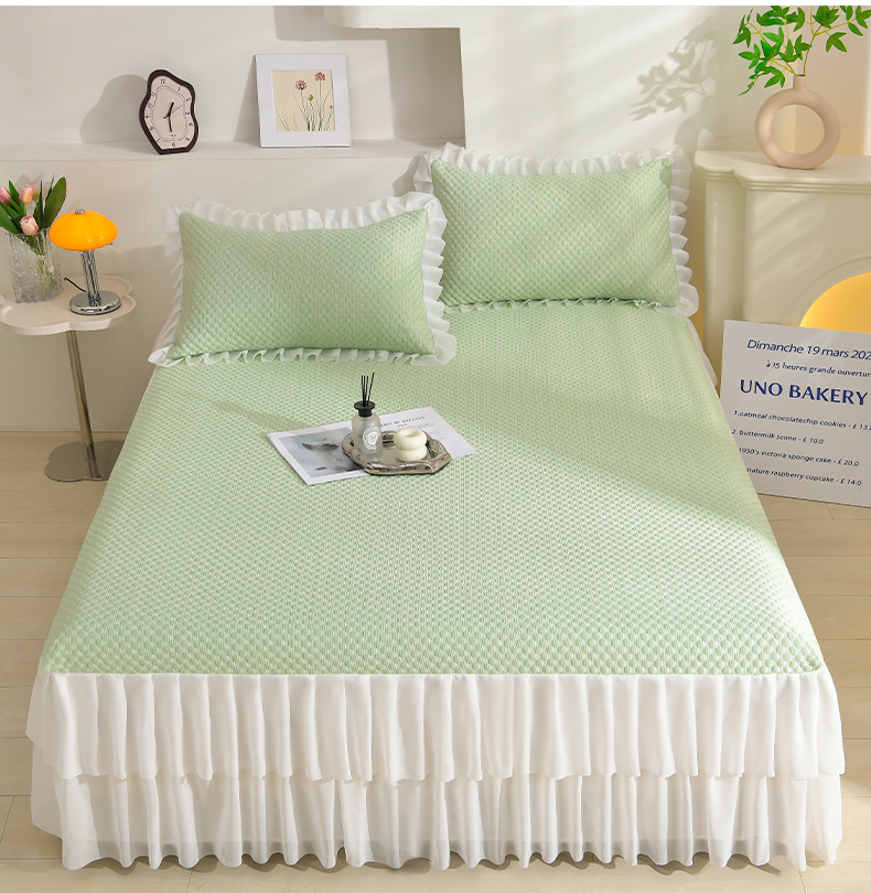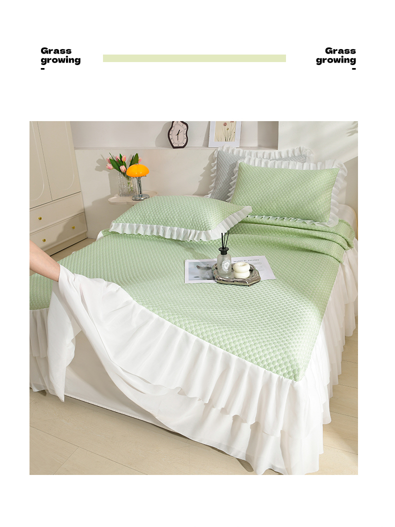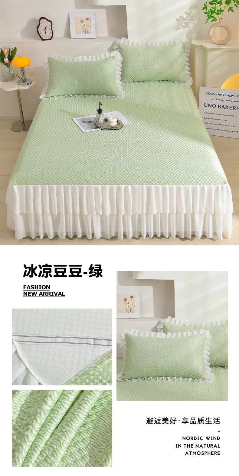 绘萱家居 2025爆款冰凉豆豆凉席三件套床裙款冰丝软席子 冰凉豆豆-绿