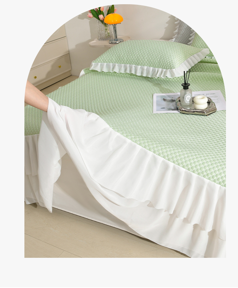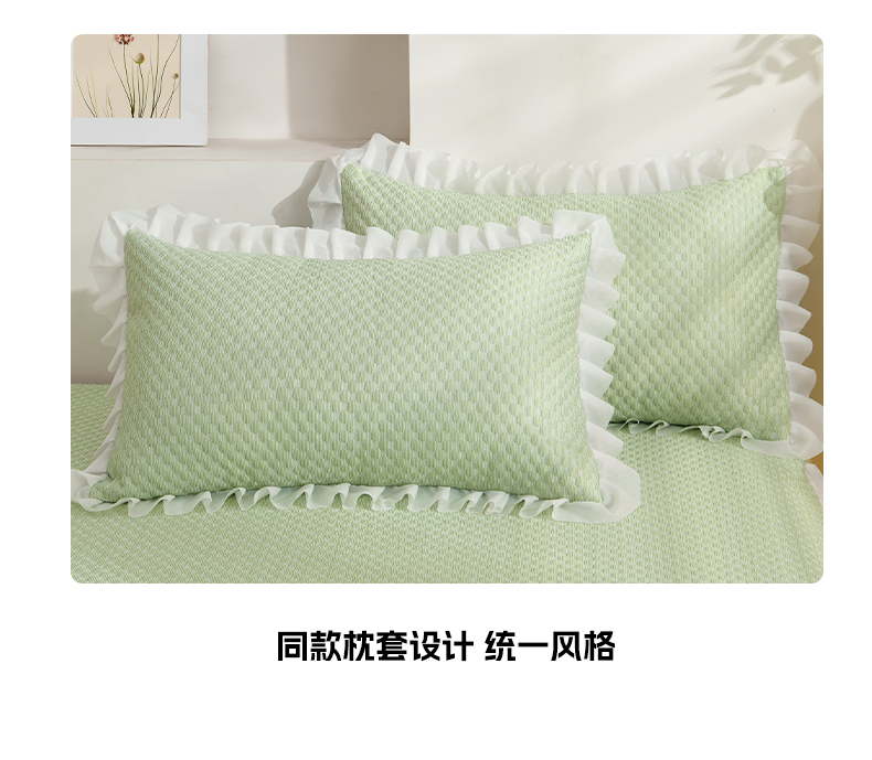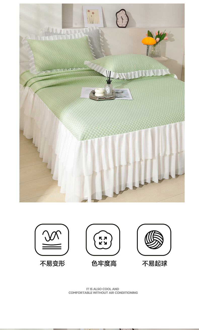 商品名称:绘萱家居 2025爆款冰凉豆豆凉席三件套床裙款冰丝软席子 冰凉豆豆-绿