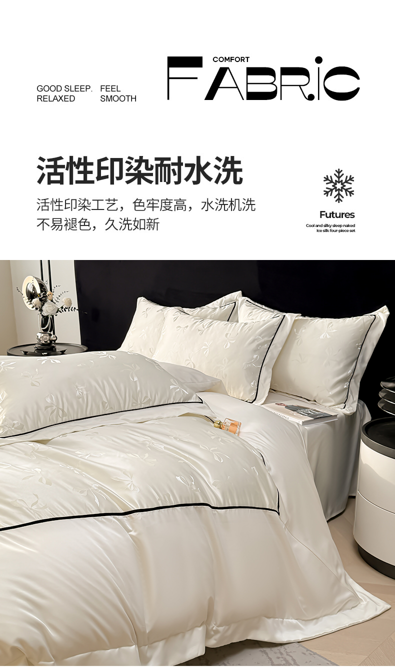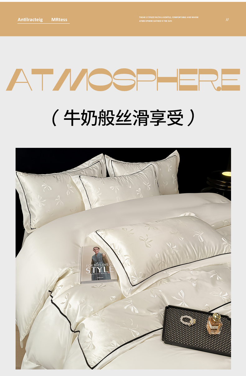 商品名称:狂想家 2025春夏新款亮丝提花系列四件套 伊莎奶昔白