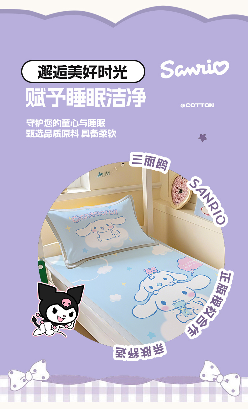 商品名称:博雅 2025春夏新款学生宿舍床三丽鸥冰丝凉席席子 云朵玉桂狗