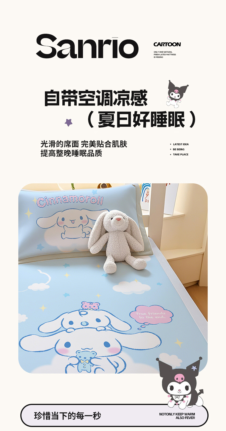 博雅 2025春夏新款学生宿舍床三丽鸥冰丝凉席席子 云朵玉桂狗
