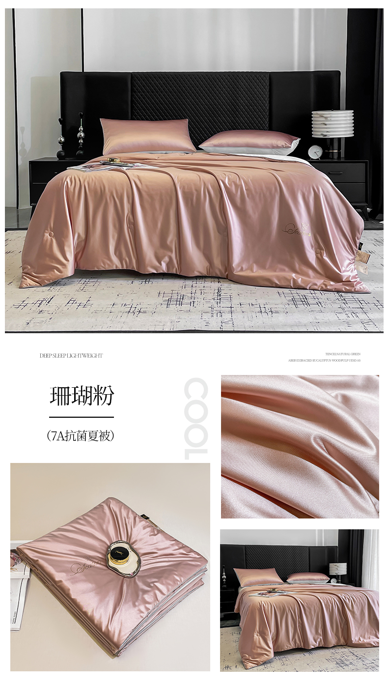 (总)佳居缘 2025春夏新款透爽冰肌7A抗菌美 肤锦氨夏被夏凉被空调被,组合图仅供展示,湖水蓝,珊瑚粉,香槟色,银河灰,樱草紫