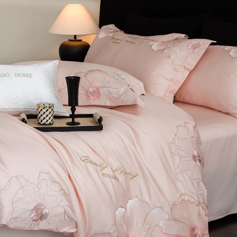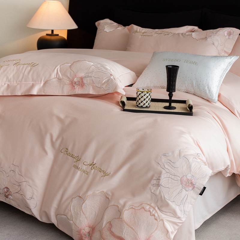 馨蕊家居 2025新款高精密刺绣轻奢风全棉四件套-棉-花至 花至-蔷薇粉
