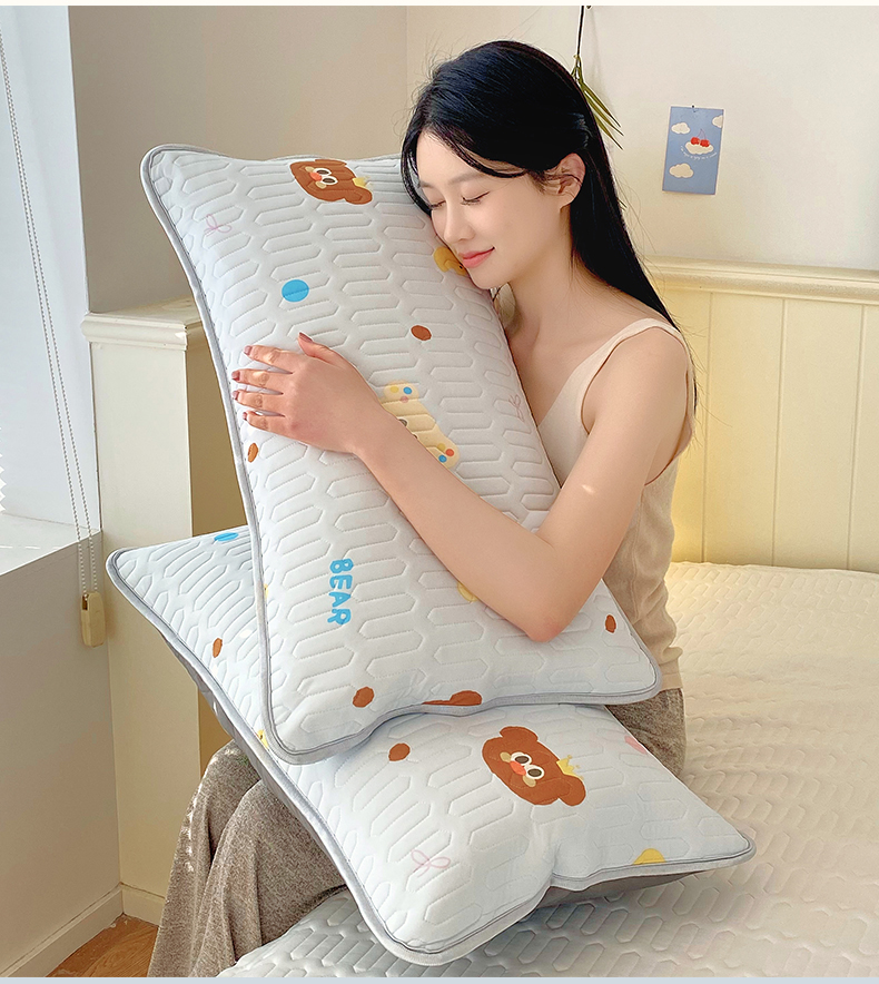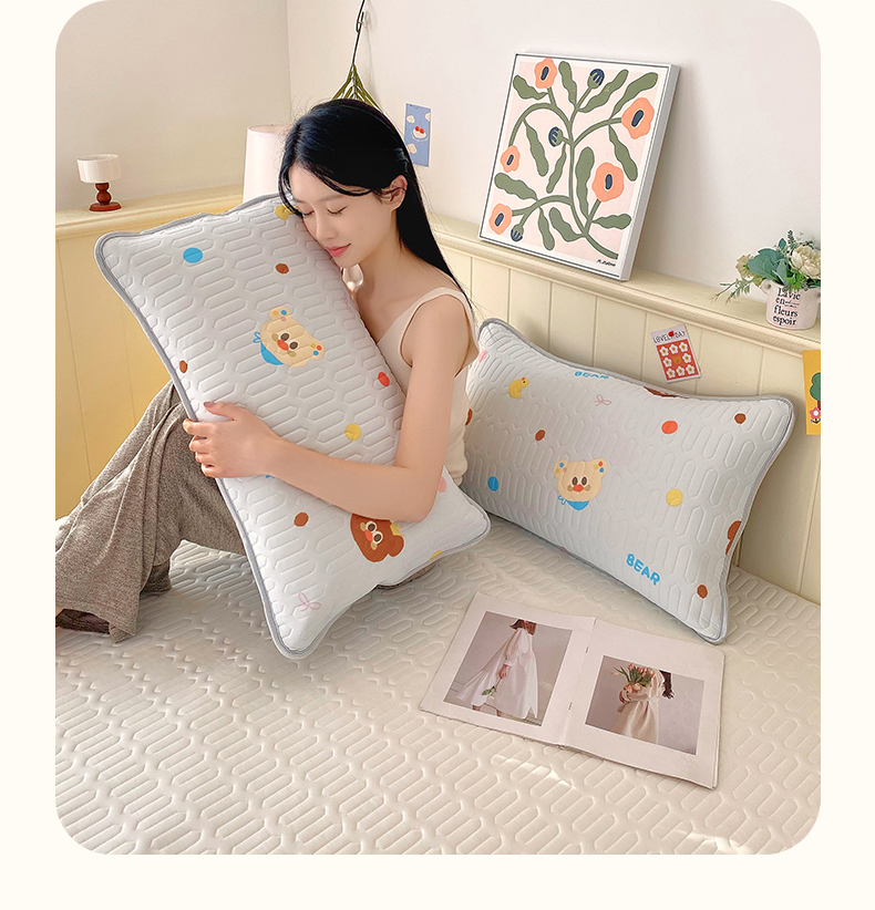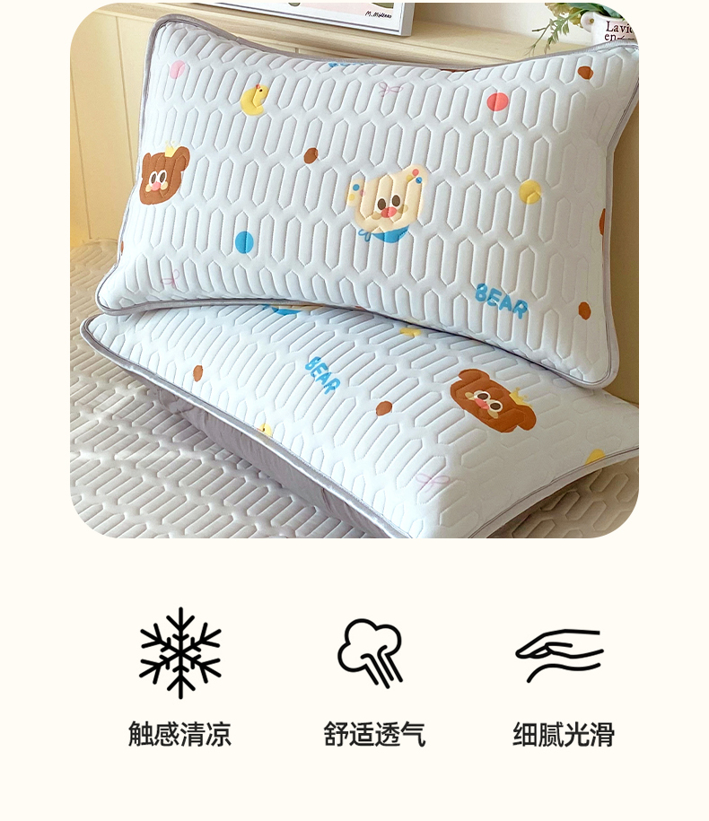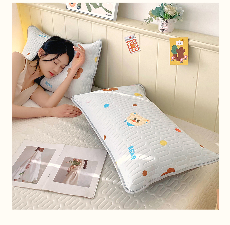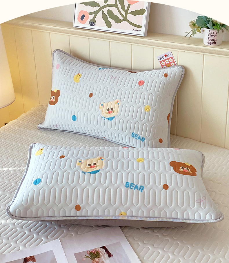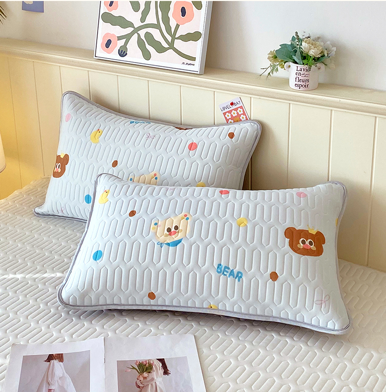 雨彤家纺 2025年新款A类凉感丝乳胶单人枕套 熊熊乐园-浅蓝