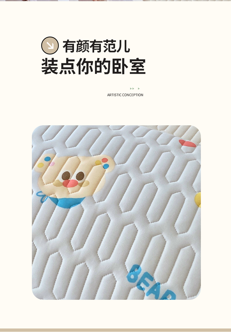 商品名称:雨彤家纺 2025年新款A类凉感丝乳胶单人枕套 熊熊乐园-浅蓝