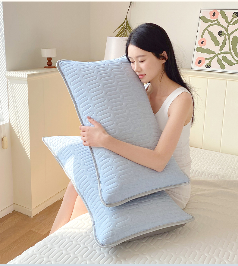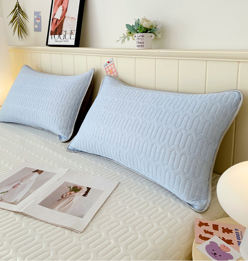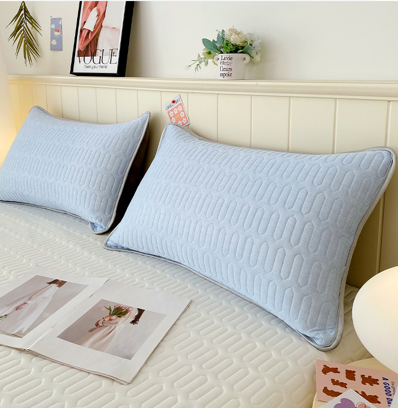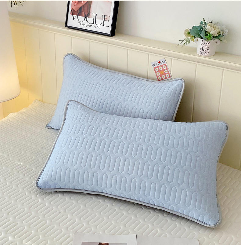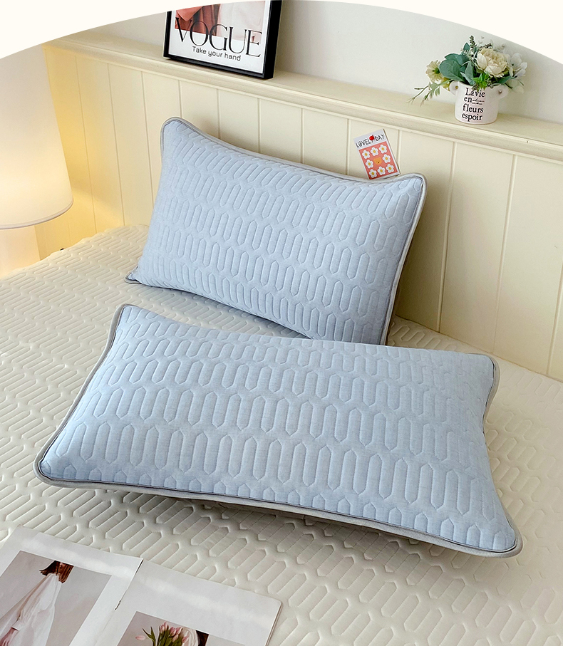 雨彤家纺 2025年新款A类凉感丝乳胶单人枕套 肌理纹-蓝