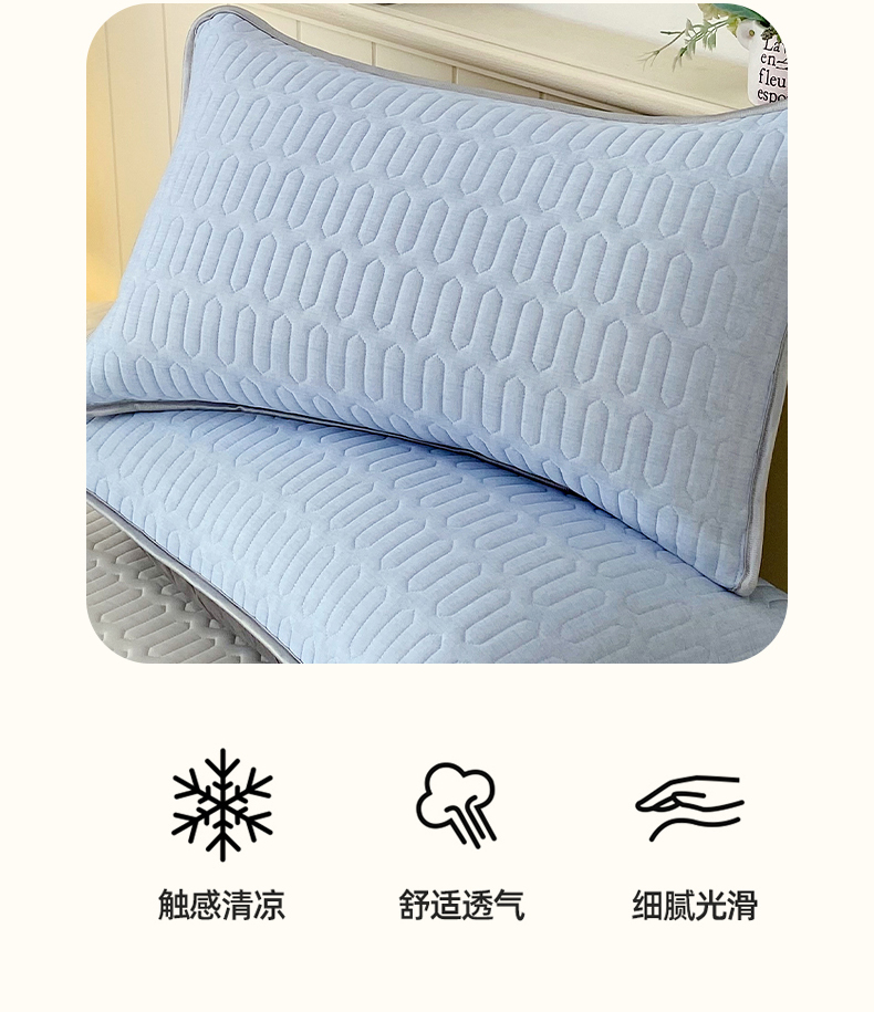 商品名称:雨彤家纺 2025年新款A类凉感丝乳胶单人枕套 肌理纹-蓝