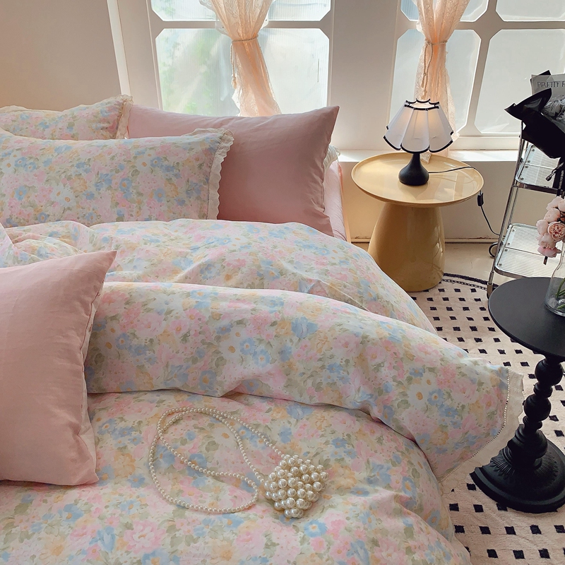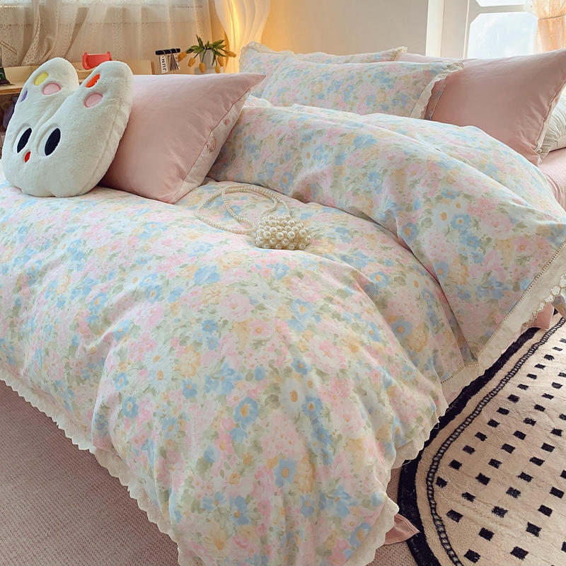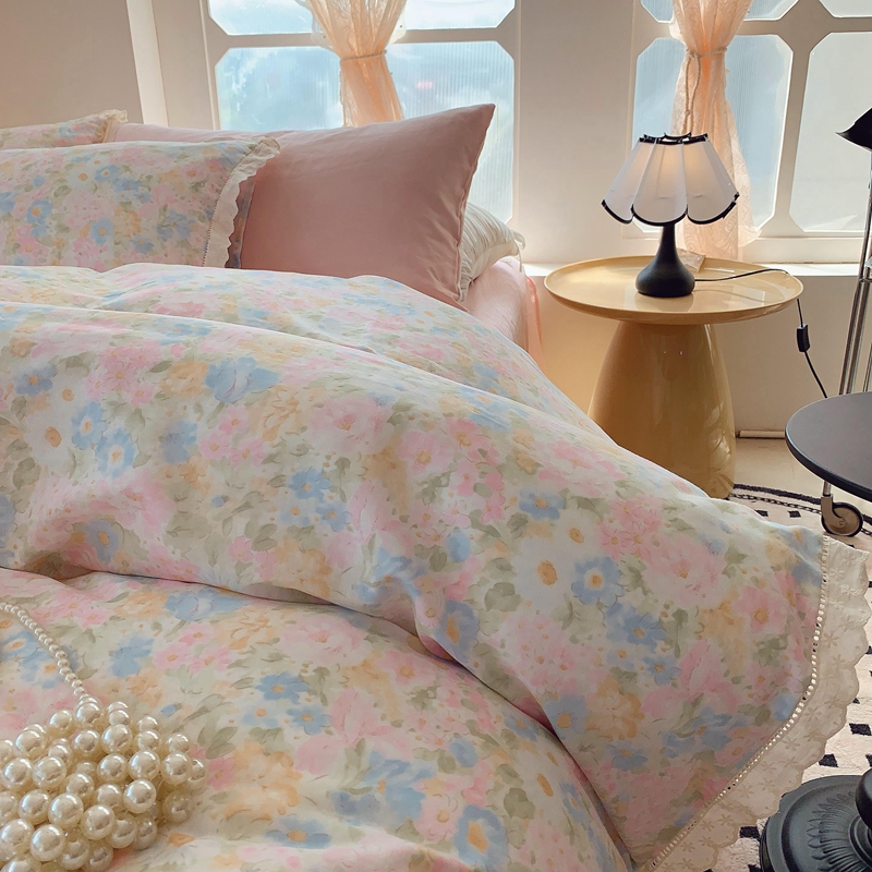 莱豫家纺 2025春夏新款双层纱花边四件套 花香魅影