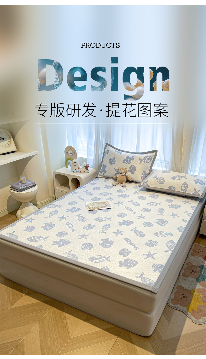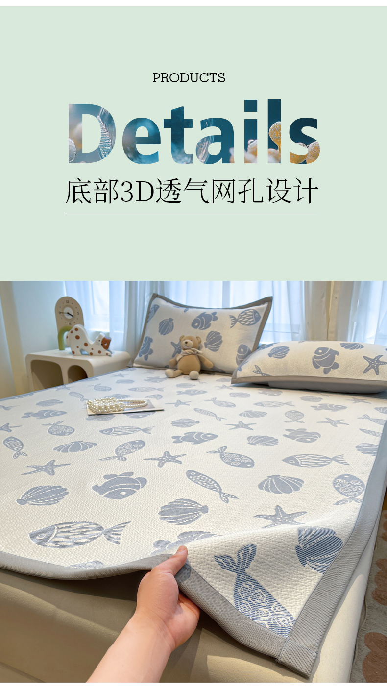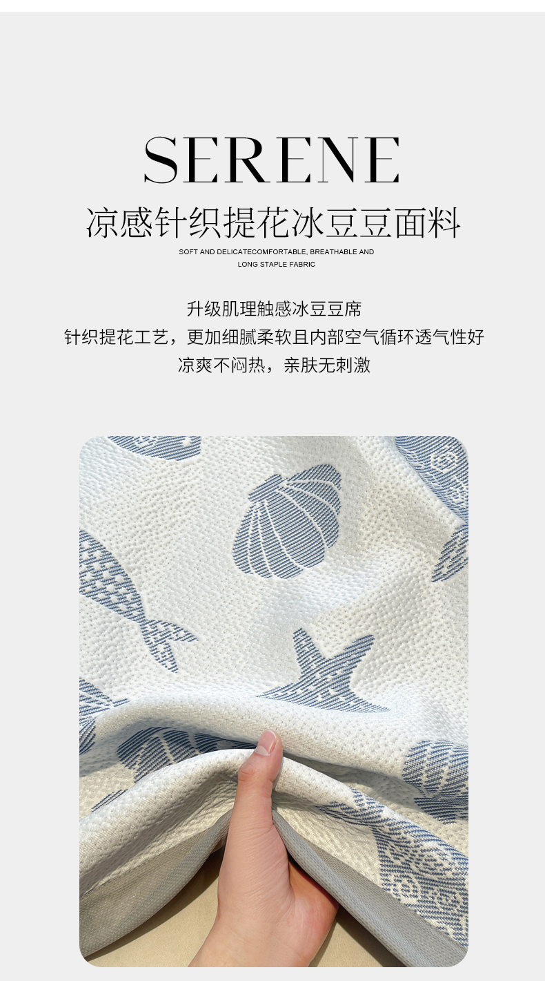 商品名称:LIFE.丽芙 2025春夏季新品A类针织提花冰凉豆豆凉感软席子平铺绑带款冰丝凉席三件套(450克)-风格二 海底世界-海蓝