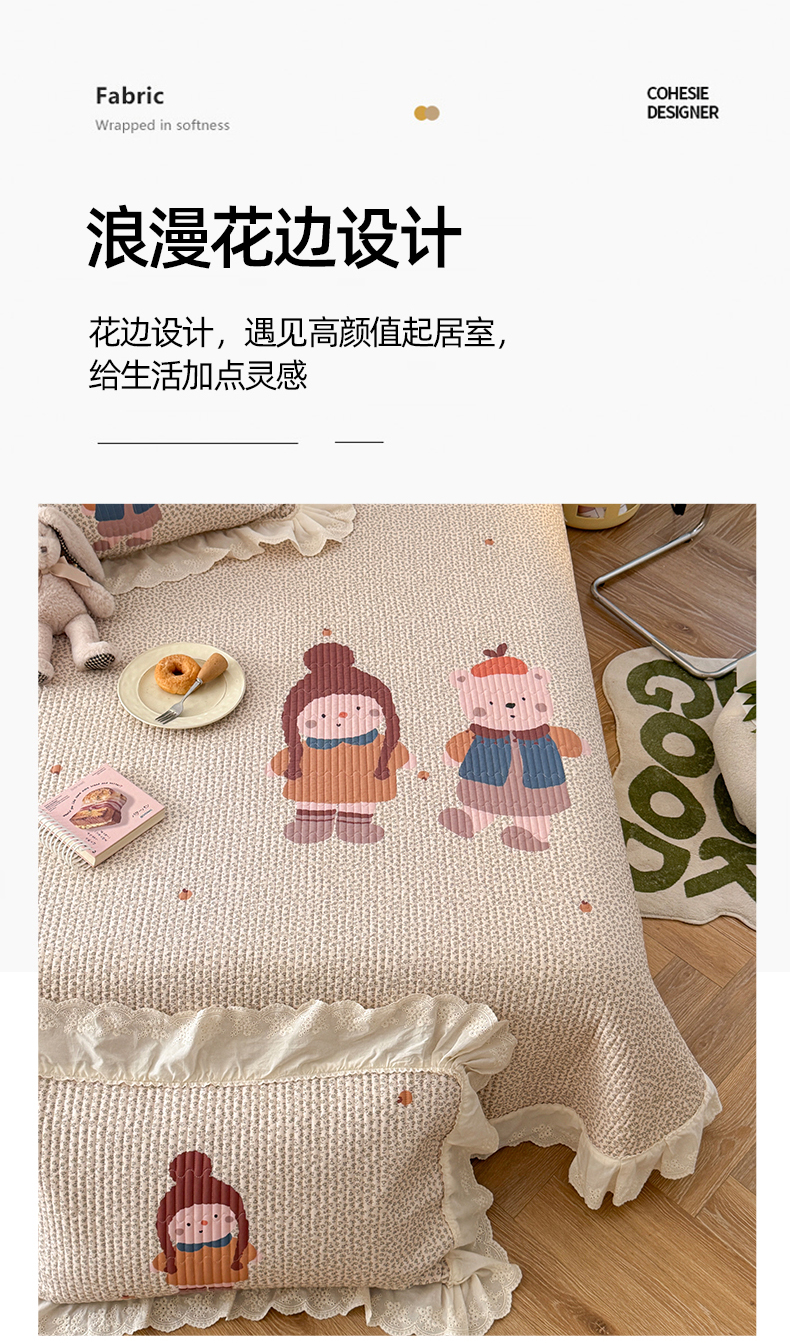 (总)茉夕家纺 茉夕家纺 2025新款里外全棉夹棉床盖系列,蝶恋花,贩卖可爱,花芒咖,兰若幽香,满满爱-熊,满天星紫,松果熊,糖果梦工厂,跳跳象,顽宠-绿,小粉兔,小猫阿狗,小美满,小熊时光,预售春天