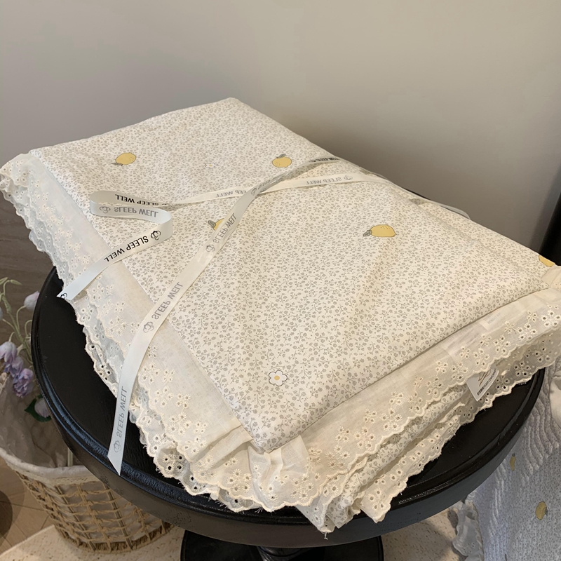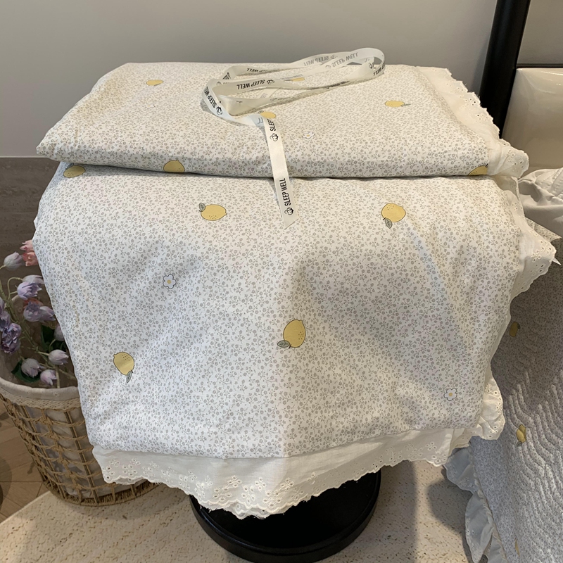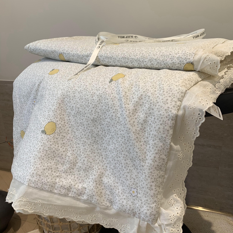 莱豫2025新款纯棉花边夏被床盖 柠檬-夏被