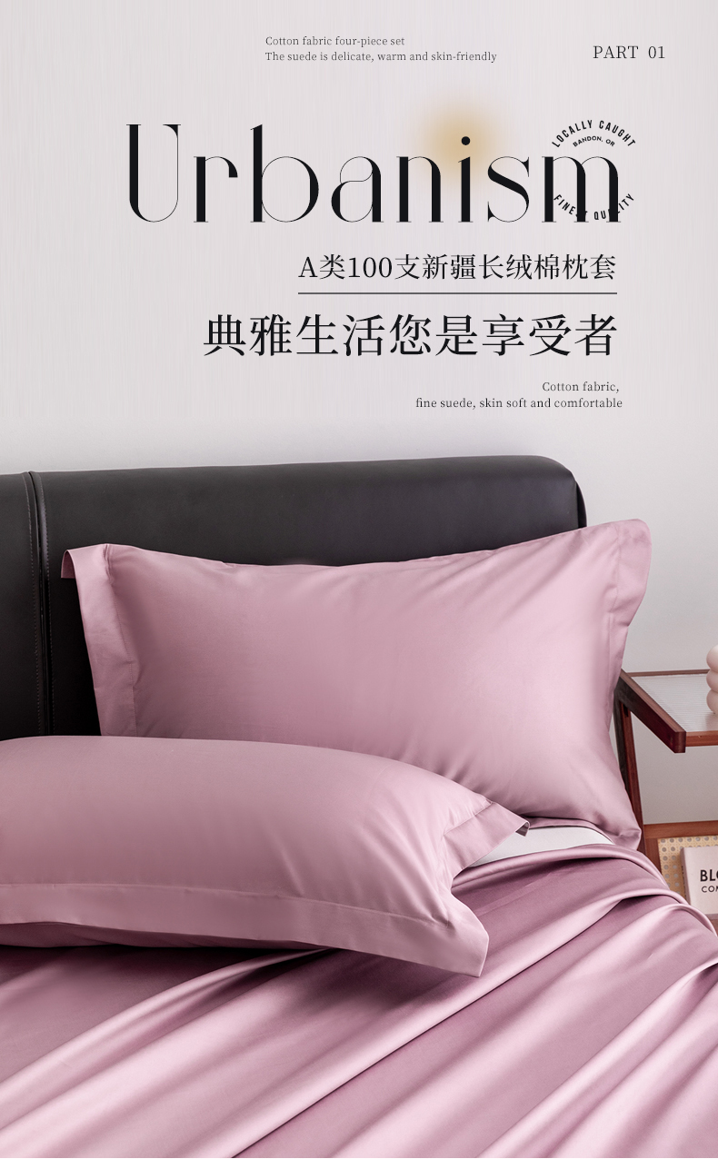 宝时兰 2025新款全棉长绒棉纯棉100支纯色单人纯棉枕套量大优惠 樱洛粉