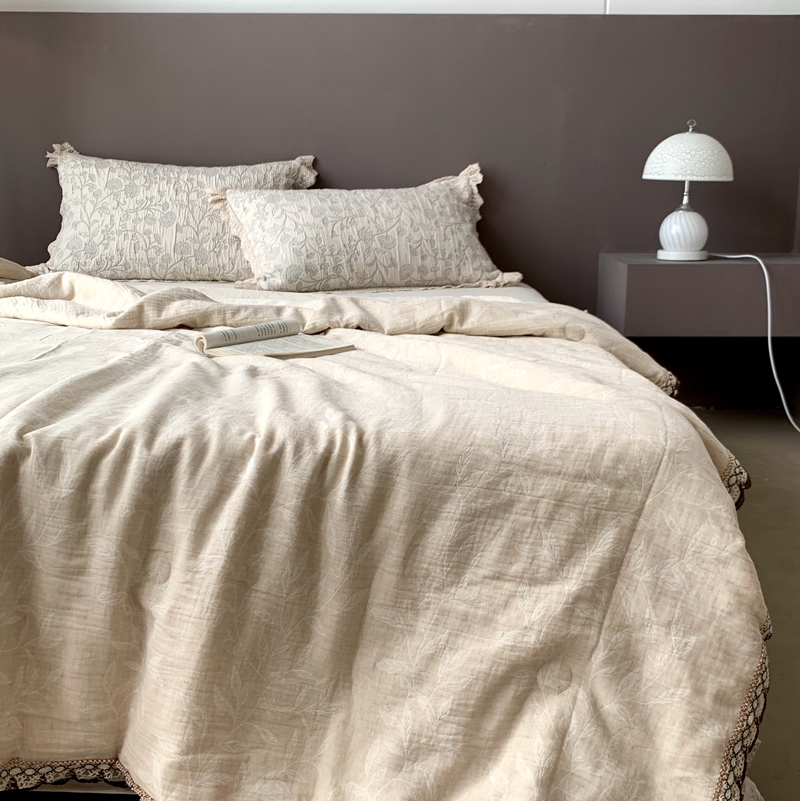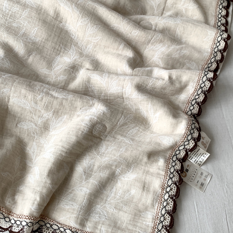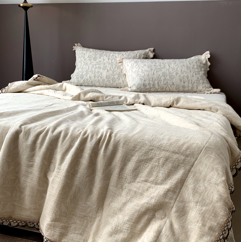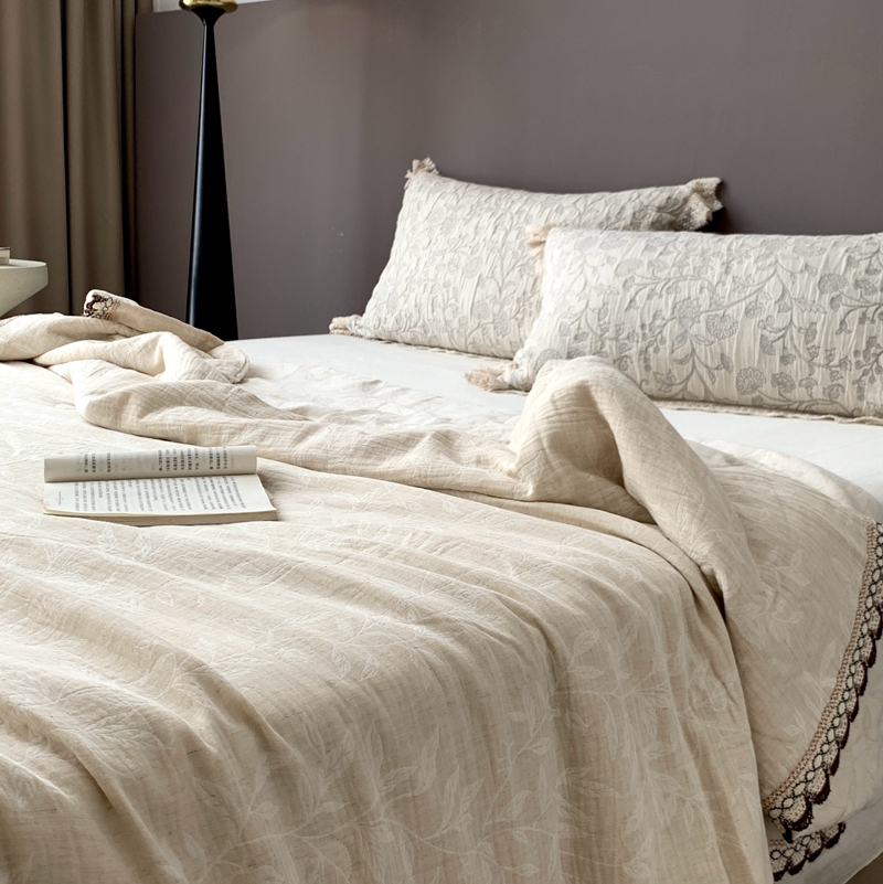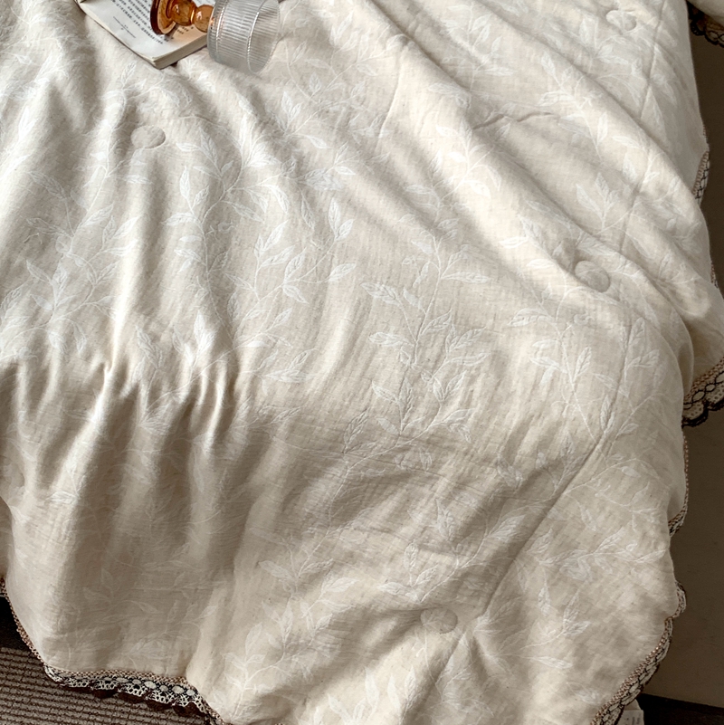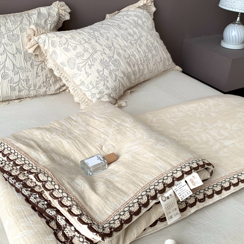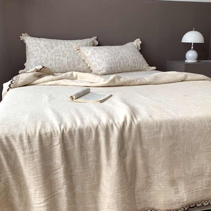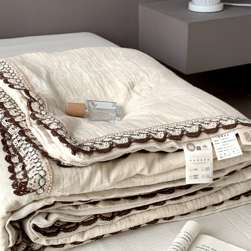 凡客2025新款棉麻色织提花双层纱蚕丝棉夏被(镂空花边款) 椿栀