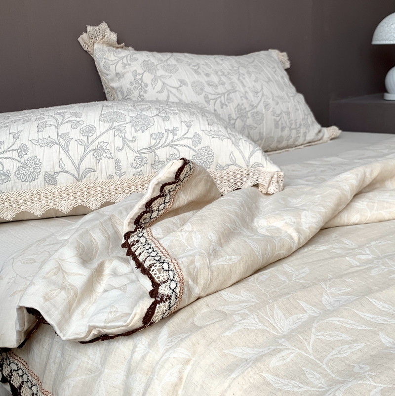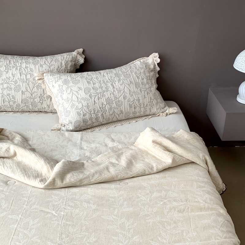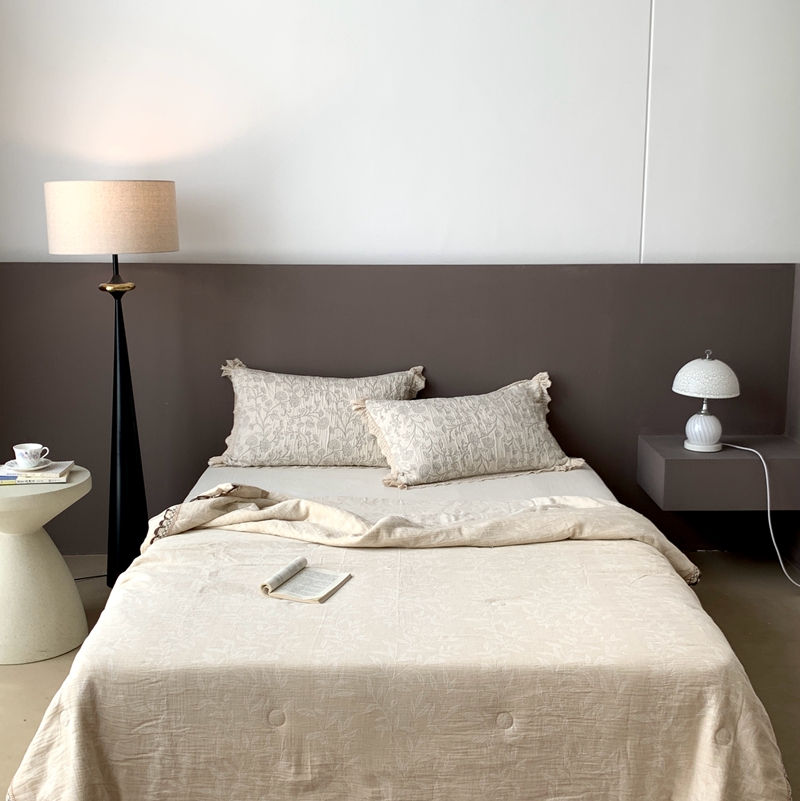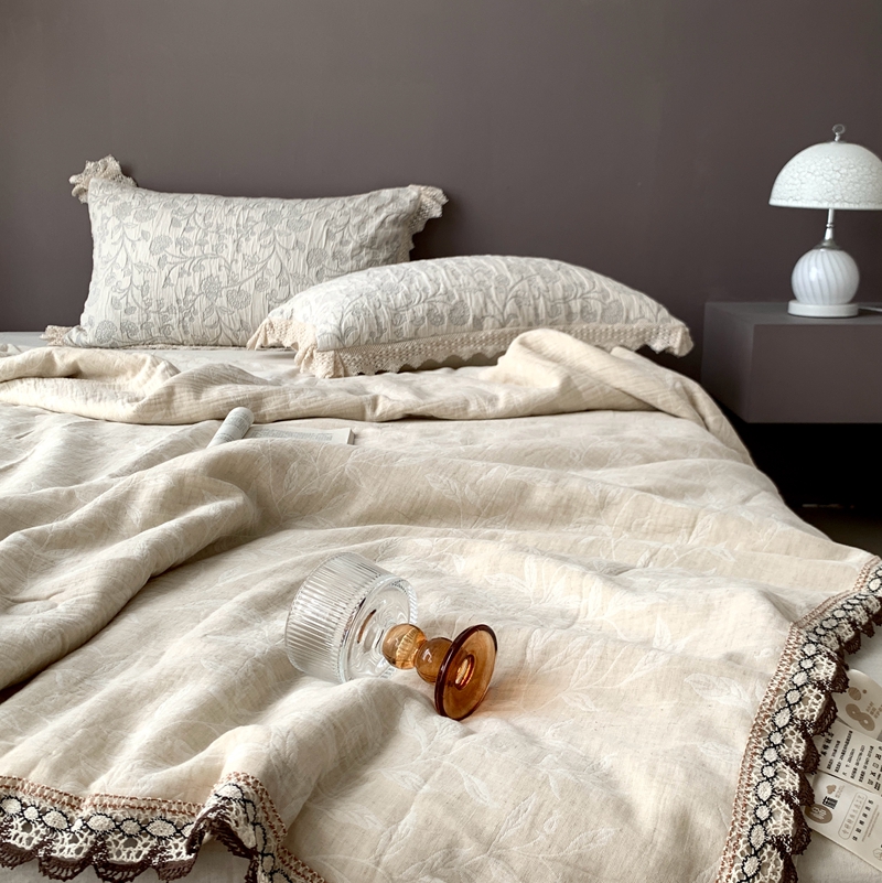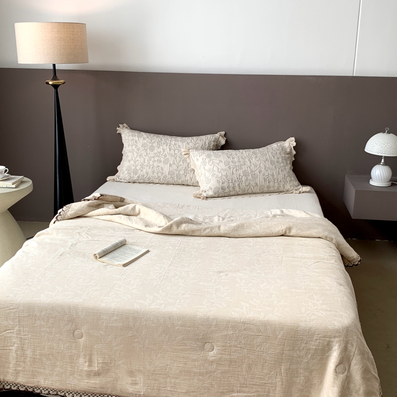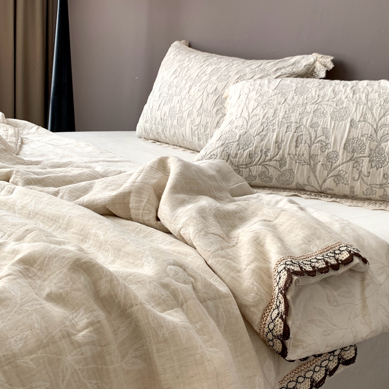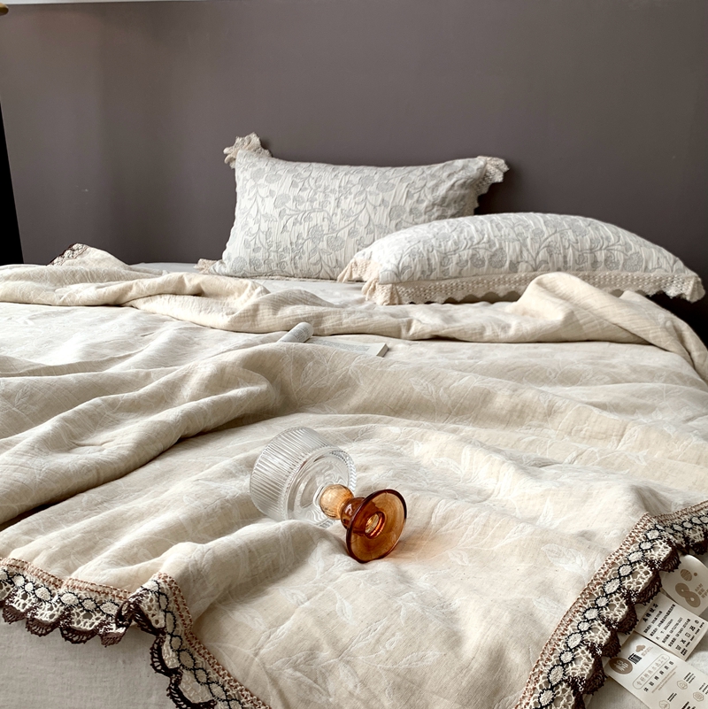 商品名称:凡客2025新款棉麻色织提花双层纱蚕丝棉夏被(镂空花边款) 椿栀