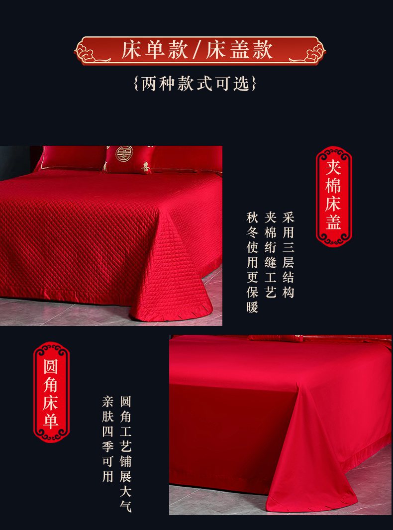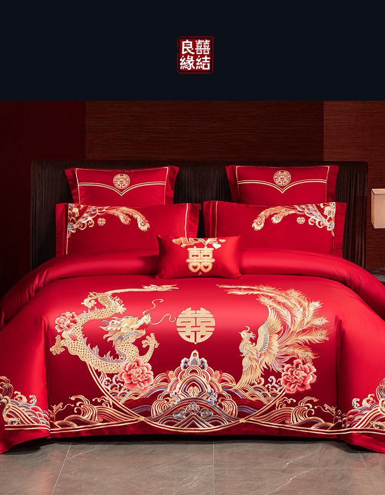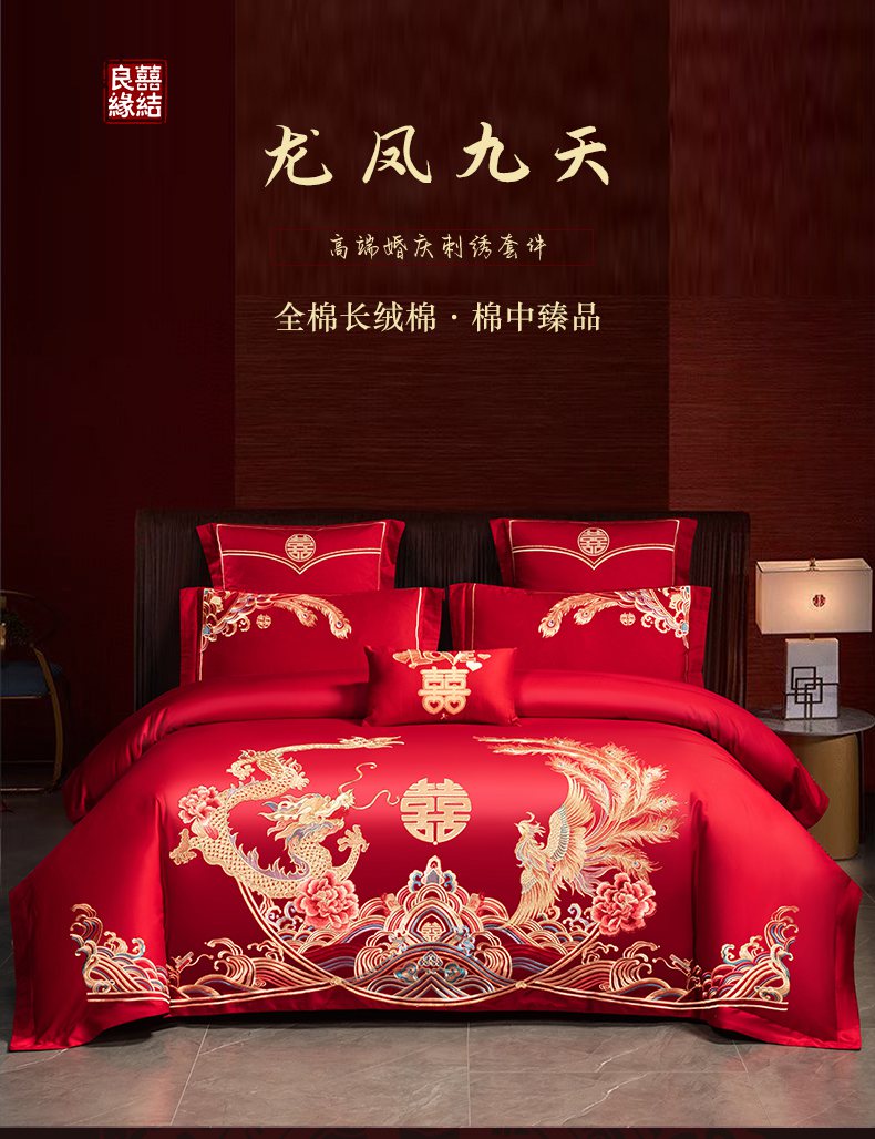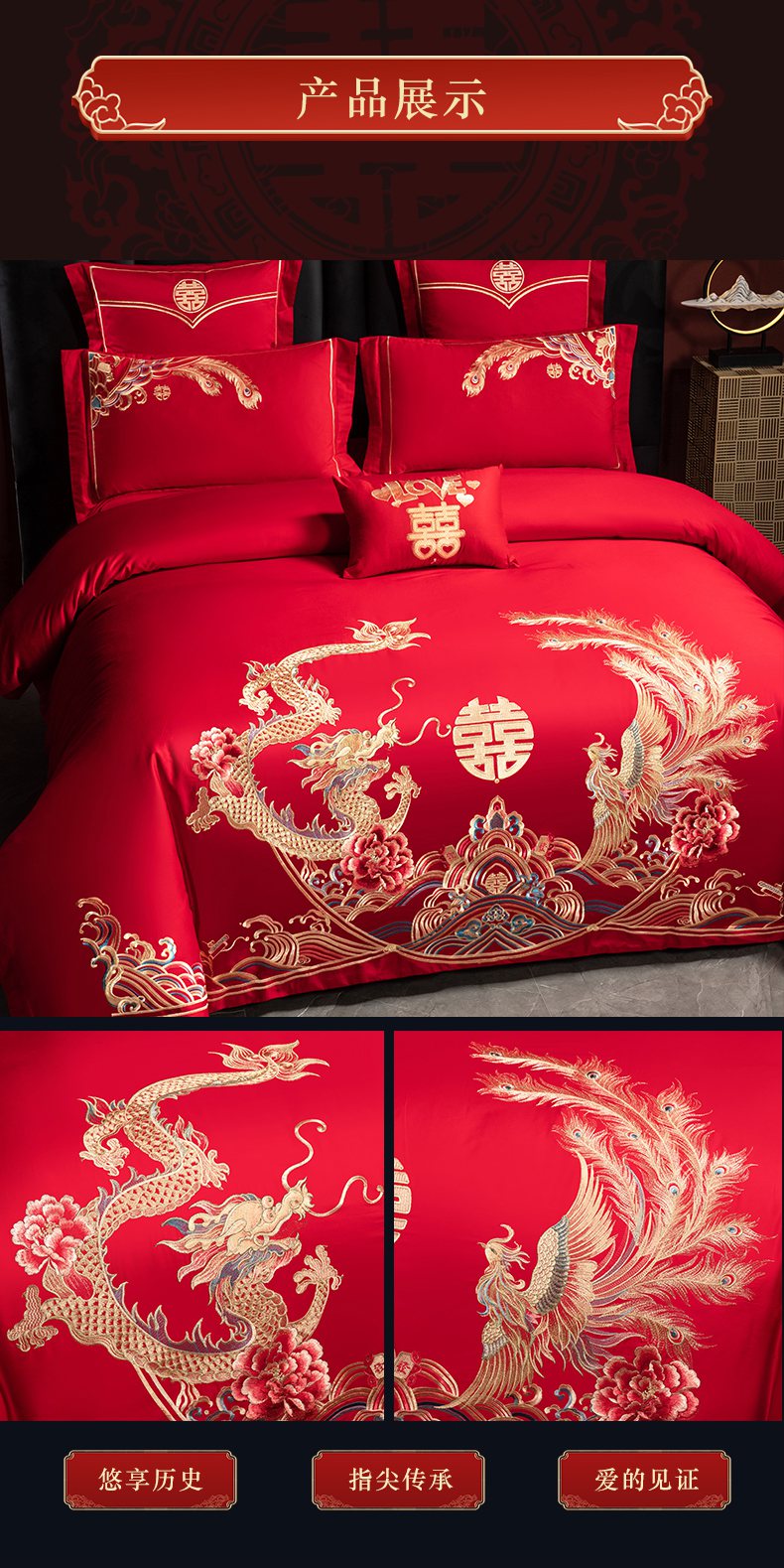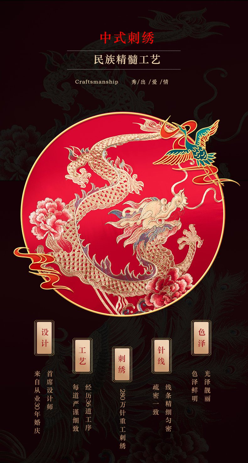 当前位置: 91家纺网 > 商品网购 > 床品套件 > 四件套 > 婚庆四件套 > 洽想家 2025新款全棉新中式刺绣婚庆四件套多件套(控价销售最低不低于288元) 龙凤九天
