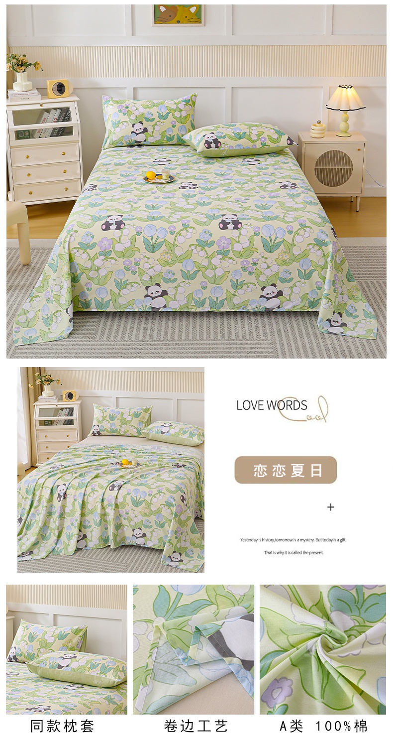 宇彬家纺 2025直播新款13070全棉纯棉印花双人单床单枕套三件套喷气小清新简约学生被单 恋恋夏日