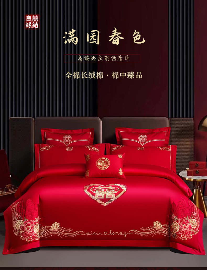 当前位置: 91家纺网 > 商品网购 > 床品套件 > 四件套 > 婚庆四件套 > 洽想家 2025新款全棉刺绣婚庆四件套多件套(控价销售最低不低于288元) 满园春色