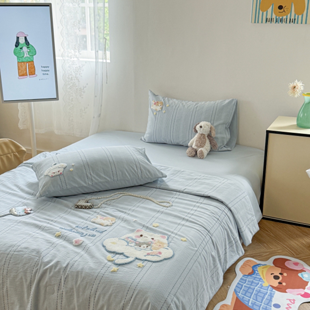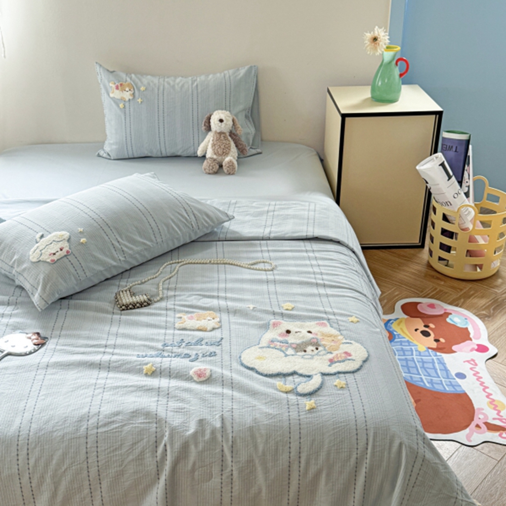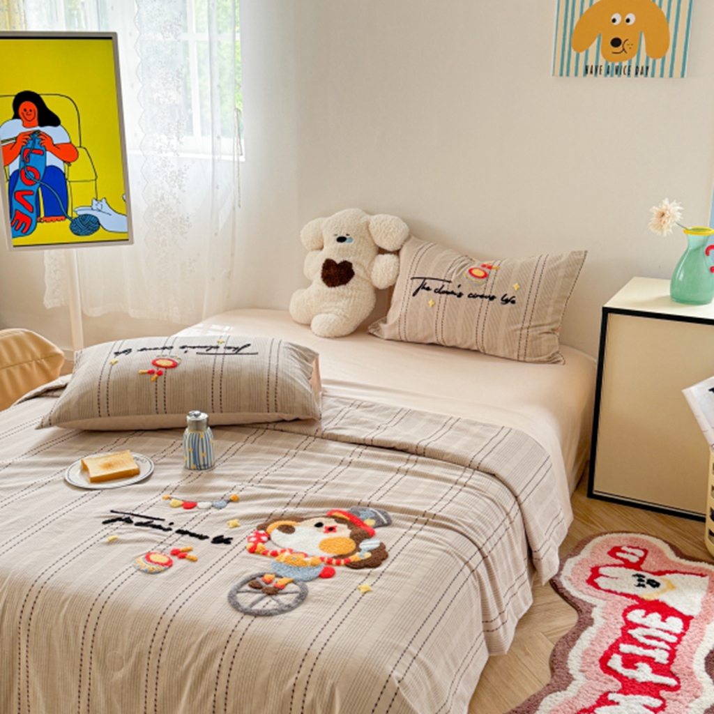 当前位置: 91家纺网 > 商品网购 > 床品套件 > 四件套 > 夏被四件套 > 柚子YOUTH 2025新款水洗棉提花毛巾绣夏被四件套 杂技小狗