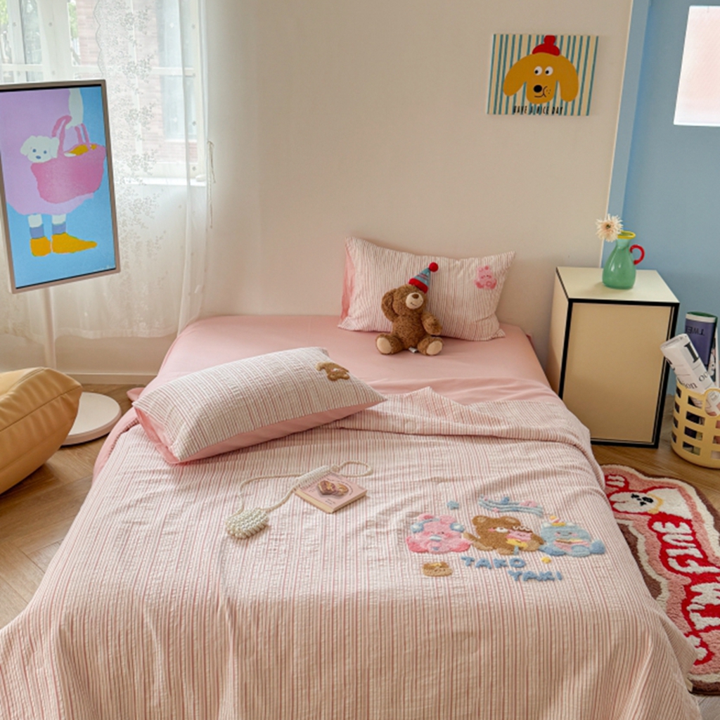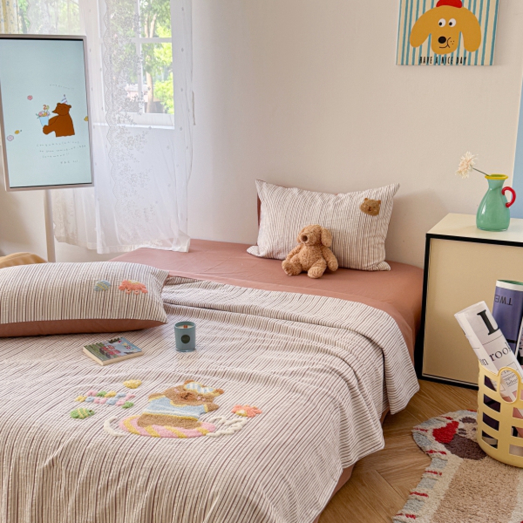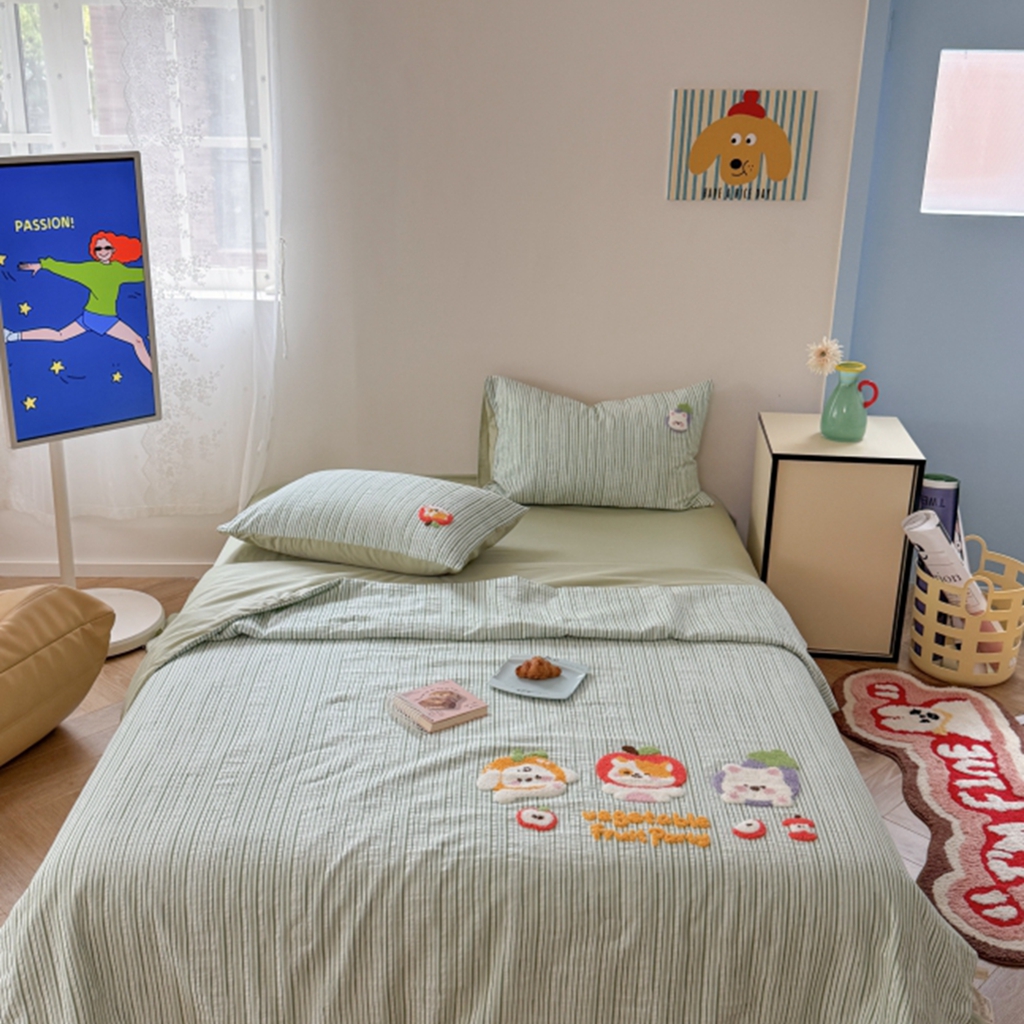 当前位置: 91家纺网 > 商品网购 > 床品套件 > 四件套 > 夏被四件套 > 柚子YOUTH 2025新款水洗棉提花毛巾绣夏被四件套 杂技小狗