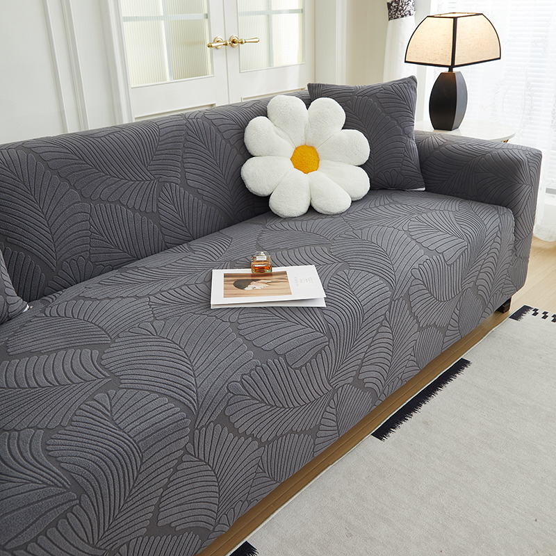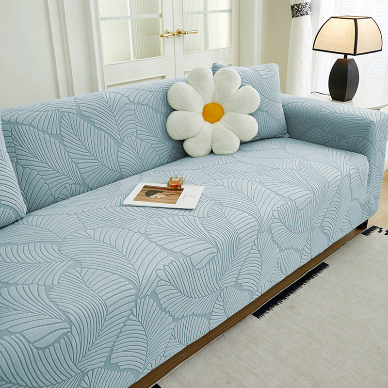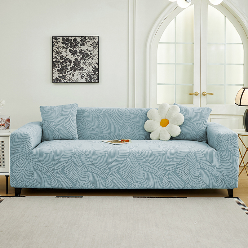 丝绮鹿 2025新款雕花绒大叶子沙发套松紧款(三人图) 雾霾蓝