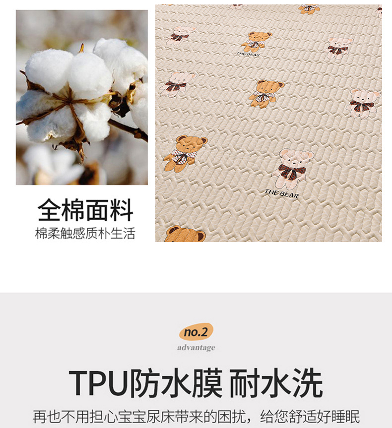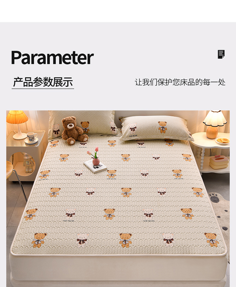 商品名称:床笠人家 2025新款全棉夹棉防水床垫 酷乐熊