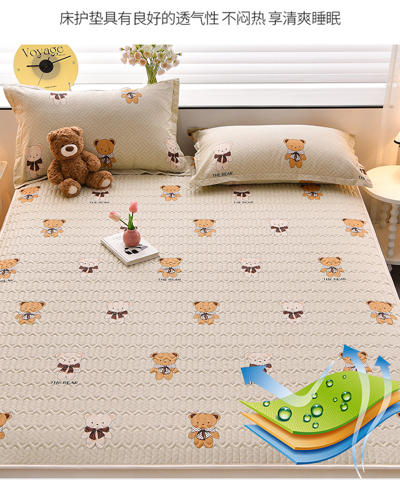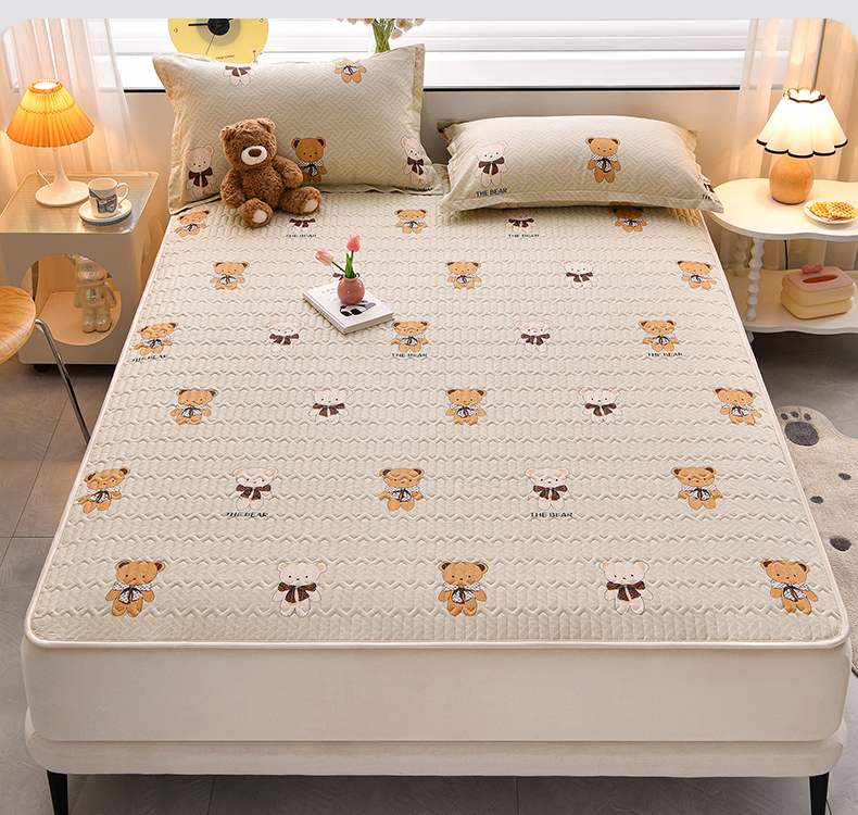 床笠人家 2025新款全棉夹棉防水床垫 酷乐熊,酷乐熊