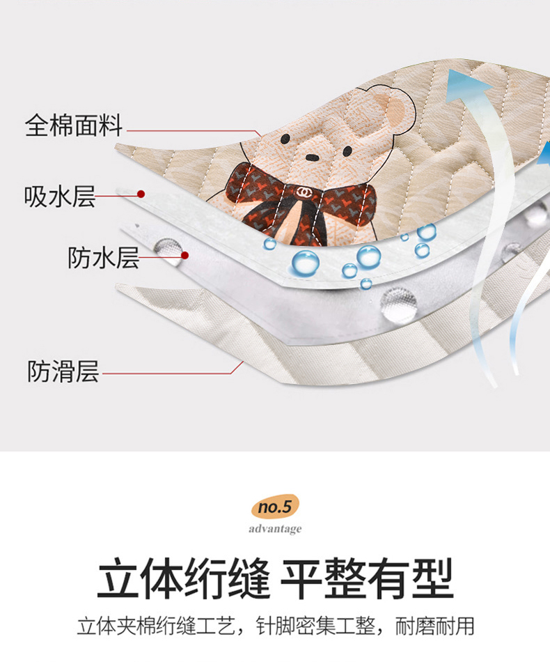 床笠人家 2025新款全棉夹棉防水床垫 酷乐熊